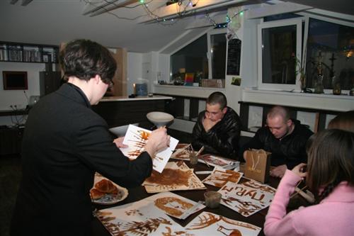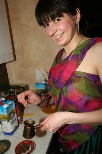 Вечеринка была объявлена «восточной», и этот стиль, хоть и не полностью, но присутствовал как в мастер-классах, так и в спектакле и в общем настроении всего праздника. Поскольку «Квартира» имеет множество помещений, то в разных из них паралельно проходили интересные занятия: в одном зале вас могли научить изготовить маску к карнавалу, в другом – раскрывали секрет праздничной упаковки подарков, в комнате с попугаем учили изготавливать праздничные свечи, которые создают атмосферу неги и романтики. Значительное место было уделено кофе как одной из важнейших особенностей Востока: кофе можно было рисовать, а можно было учиться его правильно варить, с пряностями, в небольших жезлах, чтобы каждый глоток был неповторимым и доставлял наслаждение.