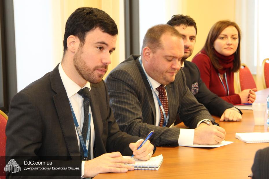 Еврейскую общину на встрече представляли Главный раввин Днепропетровска и региона Шмуэль Каминецкий и член правления общины Олег Ростовцев. Со стороны миссии ОБСЕ во встрече принимали участие политический аналитик миссии Вольфганг Шпоррер (Австрия), наблюдатели Сокол Бега (Албания) и Пьер Дэй (Франция).