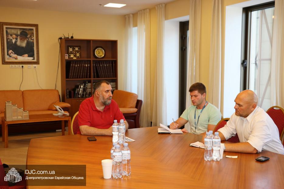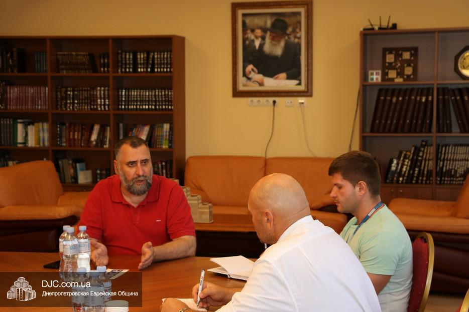 По просьбе мониторинговой миссии «Организации по безопасности и сотрудничеству в Европе» (OSCE, Organization for Security and Cooperation in Europe) состоялась встреча нового руководителя команды Днепровского офиса ОБСЕ Олега Старостина с представителем руководства еврейской общины Днепра, посвященная обсуждению вопросов деятельности еврейской общины и ее роли в политической жизни, а также взаимодействию с другими религиозными и национальными общинами.