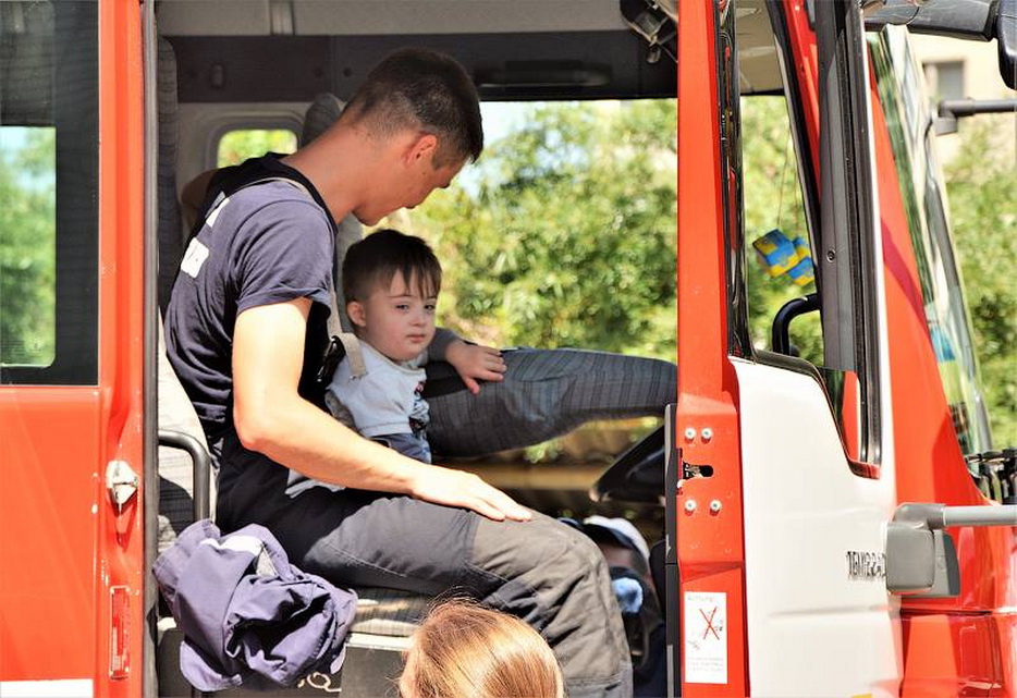 В Образовательно-ресурсный центр «Маале» для детей с особыми потребностями и ограниченными возможностями, программе, входящей в многофункциональный «Кегила-проджект», реализуемый совместно еврейской общиной Днепра и еврейской общиной Большого Бостона (штат Массачусетс, США), приехали гости из государственной службы по чрезвычайным ситуациям, аутентично-всемделишние пожарные и рятувальники.
