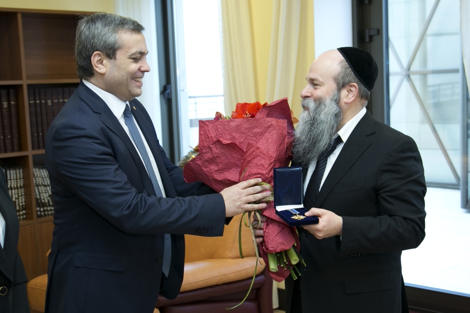 Высокую награду раввину Каминецкому вручил советник губернатора Борис Трейгерман, который подчеркнул выдающиеся заслуги Главного раввина Днепропетровска в укреплении этноконфессионального мира и спокойствия в регионе, возрождении духовности, в развитии важнейших социальных и гуманитарных программ.