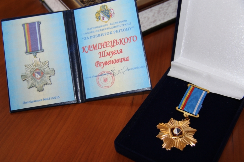 Председатель Днепропетровской областной государственной администрации Игорь Коломойский наградил Главного раввина Днепропетровска и региона Шмуэля Каминецкого почетным знаком «За развитие региона», который также известен как «Звезда Днепропетровщины».