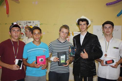 За успехи в занятиях присуждались очки, а в конце лагеря были подведены итоги этого состязания и вручены почетные награды и призы. Призы, как нам сообщил Бецалель Сулай, были очень хорошими и их предоставил москвич Айзек Иванов. Так, например, днепропетровец Залман Лужецкий получил главный приз – планшет. Третий приз – iPod touch, получил также ученик днепропетровской школы Давид Шапиро.