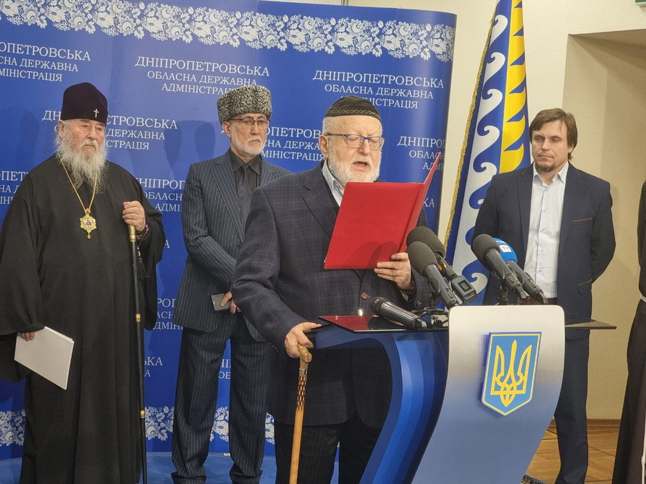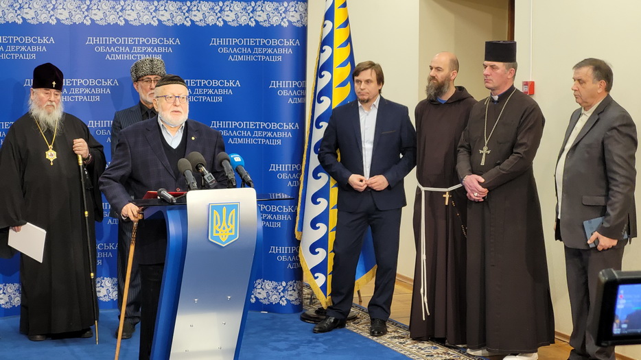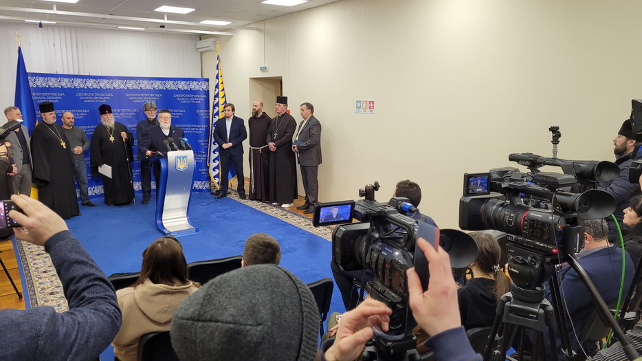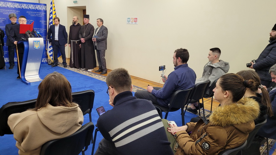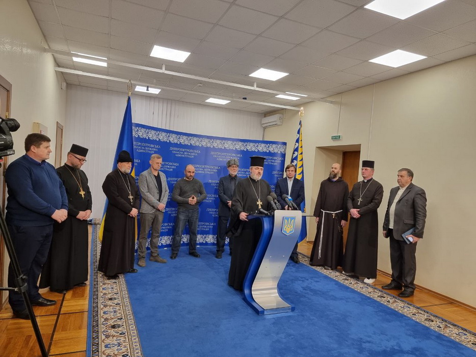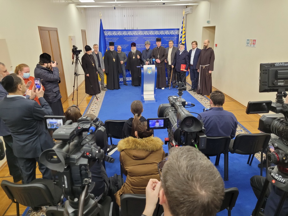 В официальном сообщении Днепровского городского совета говорится: «У Дніпрі представники різних релігійних конфесій та організацій одностайно виступили проти рішення Росії почати війну проти України, а також підтримали наших воїнів. Про це на спільному брифінгу в Дніпропетровській ОДА заявили священослужителі УПЦ, ПЦУ, римо-католицької церкви, вірменської церкви, представники мусульманської громади, грузинської громади, п’ятдесятники, бабтисти, іудеї та представники харизматичного руху. Вони зазначили, що допомагатимуть та підтримуватимуть українців та воїнів ЗСУ незалежно від релігійних переконань та конфесій, а також пообіцяли молитися за мир та перемогу України».