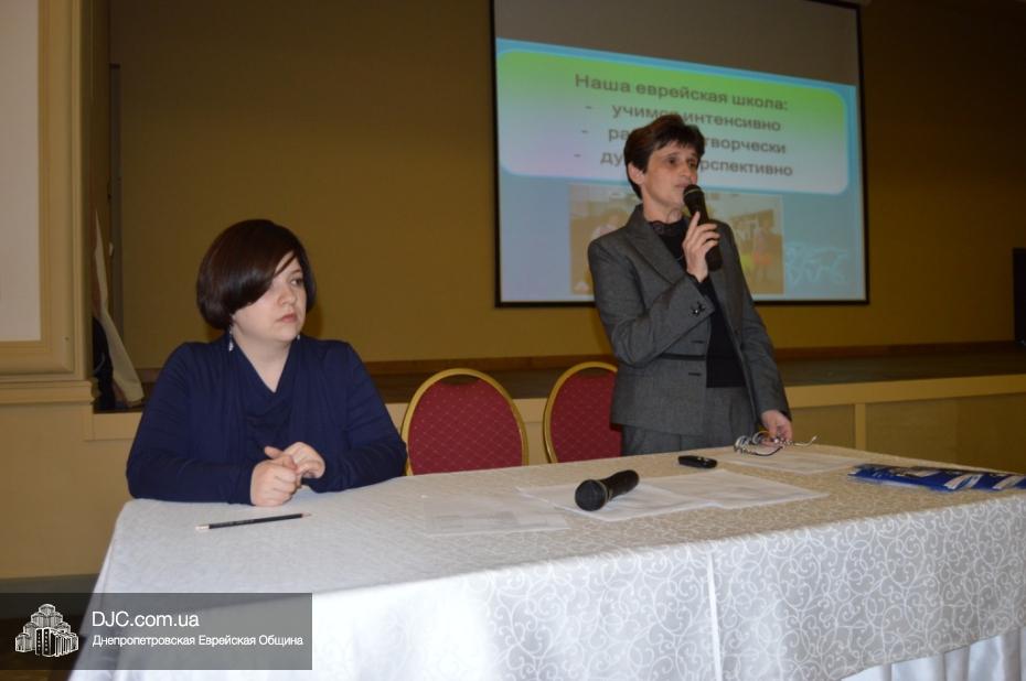 «В этот раз общее собрание было посвящено не столько административным вопросам, сколько носило информационно-аналитический характер», — сообщила нашему сайту завуч школы Татьяна Хавкина. С основным докладом «О положении в школе» выступила директор Елена Краснова, которая проинформировала об успехах еврейской школы за первое полугодие этого учебного года, об активном участии детей в различных национальных и международных конкурсах, викторинах и олимпиадах, о победах и наградах, которые получили, как ученики школы, так и преподаватели (читатели нашего сайта были подробно информированы о каждом из этих событий). Кроме того, директор школы отметила и проблемные вопросы, тревожащие школьное руководство – высокое количество пропусков занятий, проблемы нравственности, качества знаний. Елена Краснова напомнила главную задачу, стоящую перед школой – «развитие интеллекта и воспитание нравственности», которая была поставлена руководством общины и которая, безусловно, будет выполнена в самые сжатые сроки.