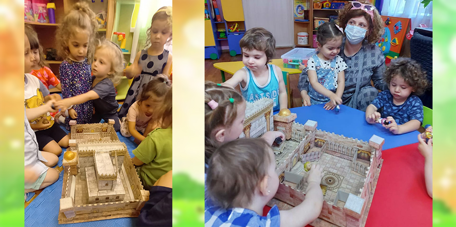 Как рассказала нашему сайту руководитель программ еврейского компонента Двора Фурлендер: «В пятницу вечером вместе с Шабатом наступил месяц Менахем-Ав (утешительный Ав), именно в нем мы ждем утешения за горести и беды разрушения Храма. Мы с малышами рассматривали макет Храма, рассказывали о Бейс Амикдаш и даже конструировали его. Занятия в группах проводили воспитатели Анна Портная (старшая группа) и Лилия Лишак (ясельная группа).
