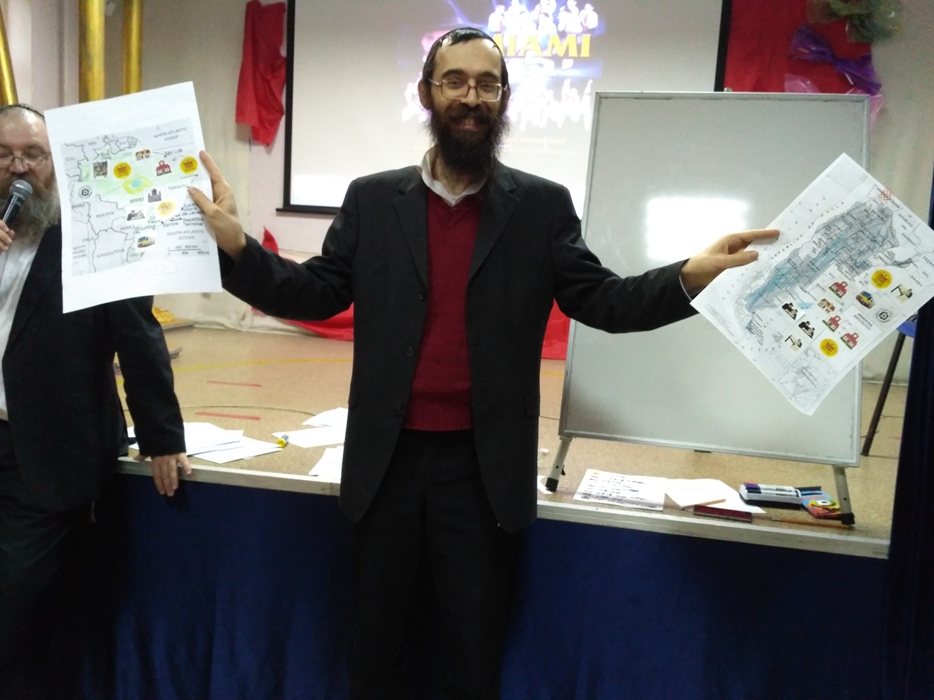 В начале были созданы команды, их было семь, и в каждой было как минимум по одному представителю от каждого класса. Внутри команды были распределены функции, обязанности и привилегии каждого члена команды. Затем ребятам предстояло узнать, в какую страну они отправятся – надо было разгадать ее название по флагу или по официальному наименованию на ее языке, а потом отыскать и карту этой страны. Здесь ребятам очень сильно помогло увлечение спортом, в том числе и футболом, и очень скоро в каждую из семи стран – США, Францию, ЮАР, Канаду, Австралию, Аргентину, Бразилию – отправились посланники возрождать там еврейство и создать еврейскую инфраструктуру.