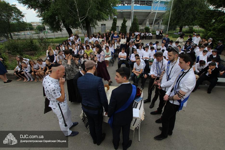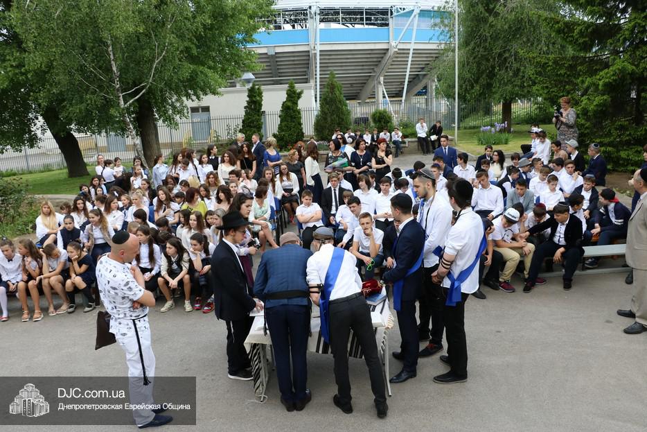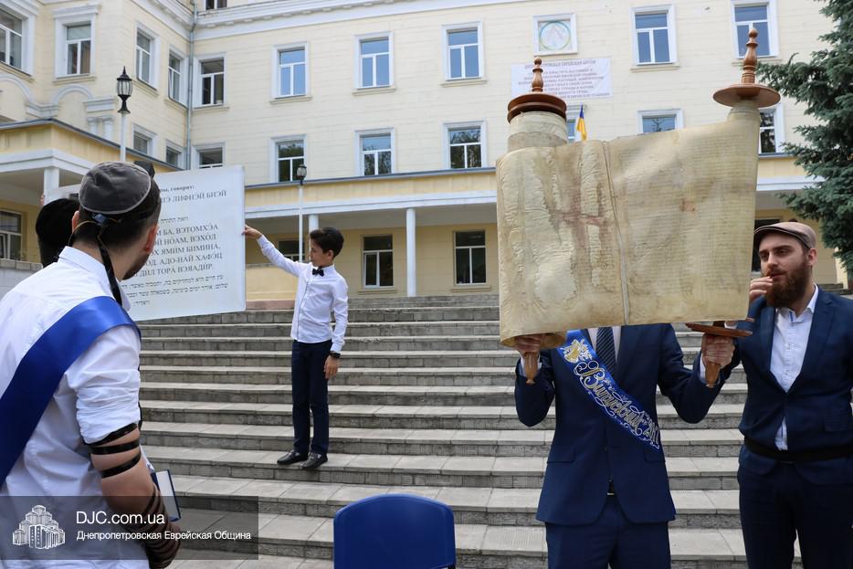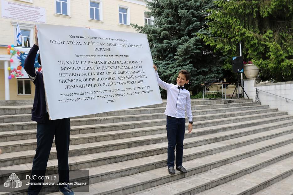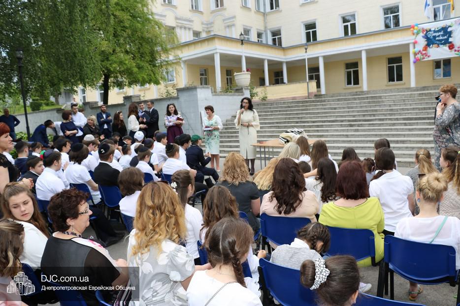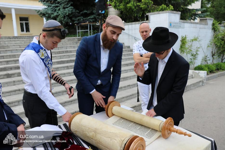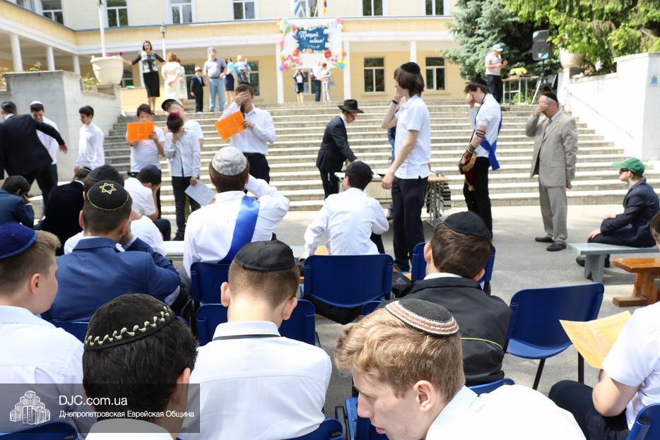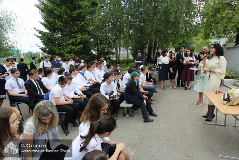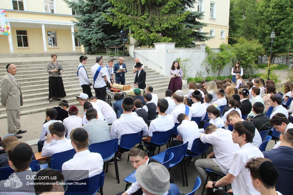 Рош Ходеш Сиван в еврейской школе прошел сразу после окончания праздника «Последнего звонка», причем молитва и чтение Торы проходили на свежем воздухе — на площадке перед главным фасадом школы.