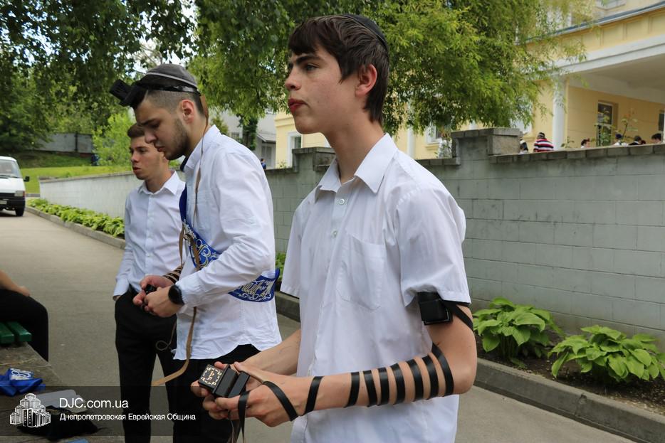 К чтению Свитка были вызваны выпускники, покидающие еврейскую школу. Молитву проводили выпускник Моше Закута и старший мадрих пансиона «Байт ле-Баним» Давид Васьковский.