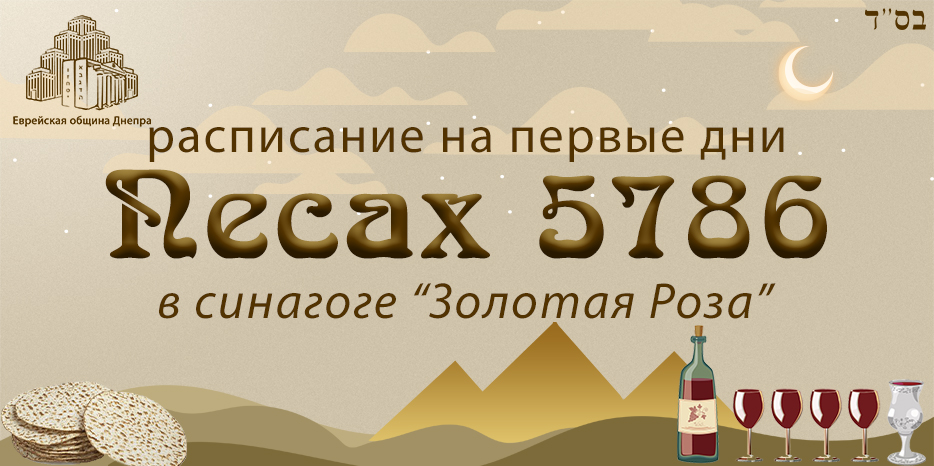 Центральная синагога «Золотая Роза» информирует о времени начала молитв и других важных моментов первых дней праздника Песах 5786 (с 1 по 3 апреля) для Днепра.