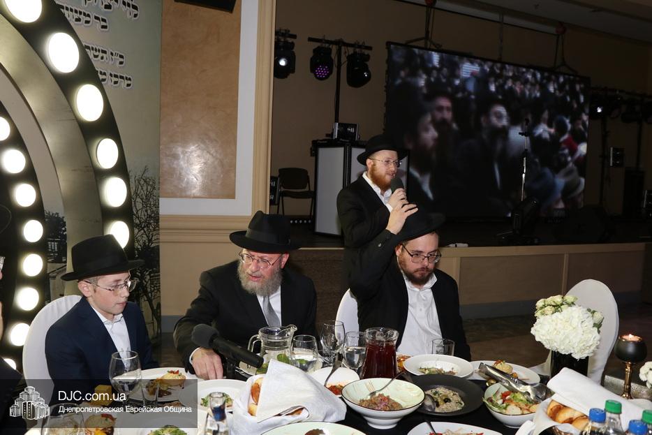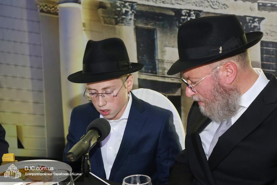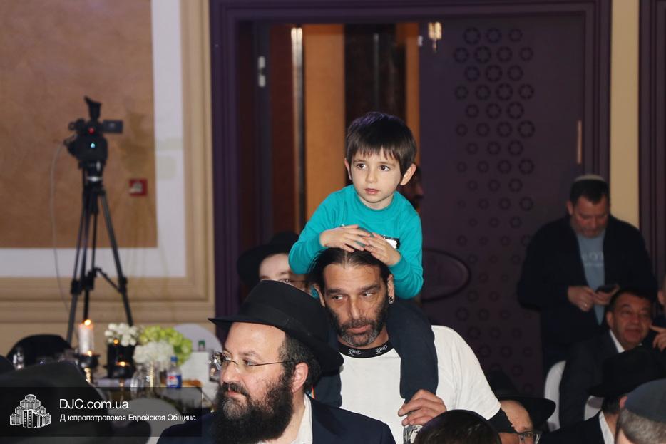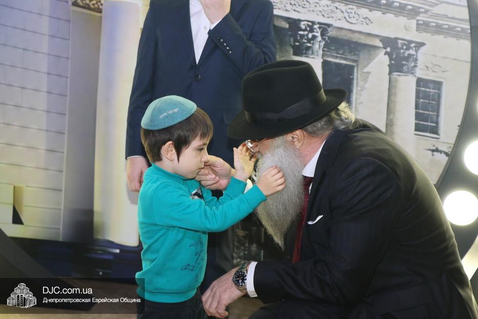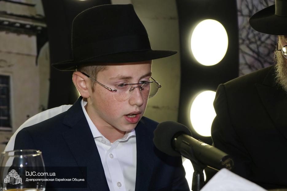 Перед началом торжественной части гости с радостью поздравляли именинника и его родителей, фотографировались с ними и обменивались теплыми пожеланиями. Официальная часть в зале открылась видеообращением Седьмого Любавического Ребе Менахема-Мендла Шнеерсона. Затем юного Леви-Ицхака поздравил член Попечительского совета общины Натан Золотаревский, а отец, раввин Мойше Вебер, прочитал псалмы, после чего главный раввин Запорожья, Нохум Эрентрой а-Коэн, произнес благословение для всех собравшихся.