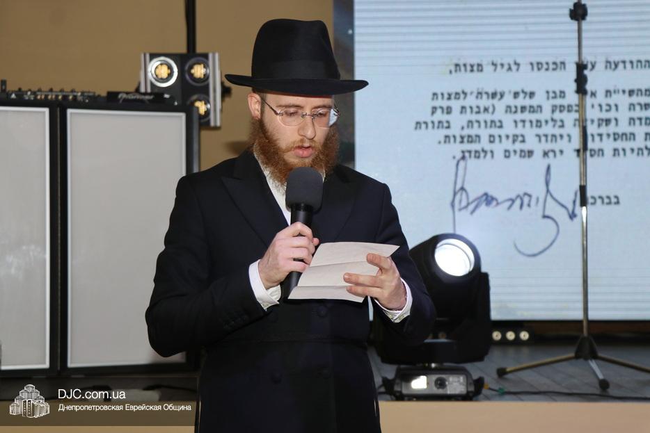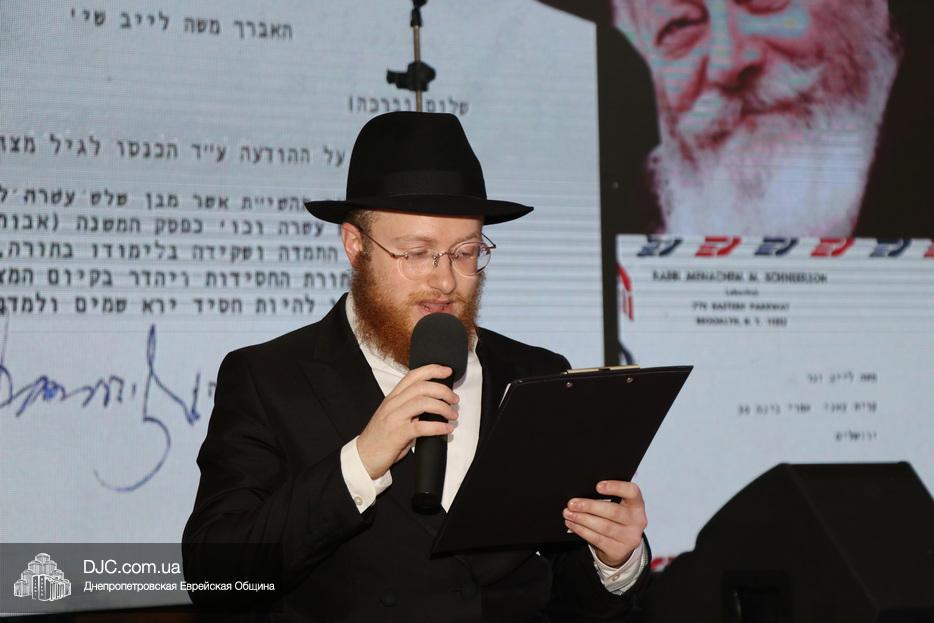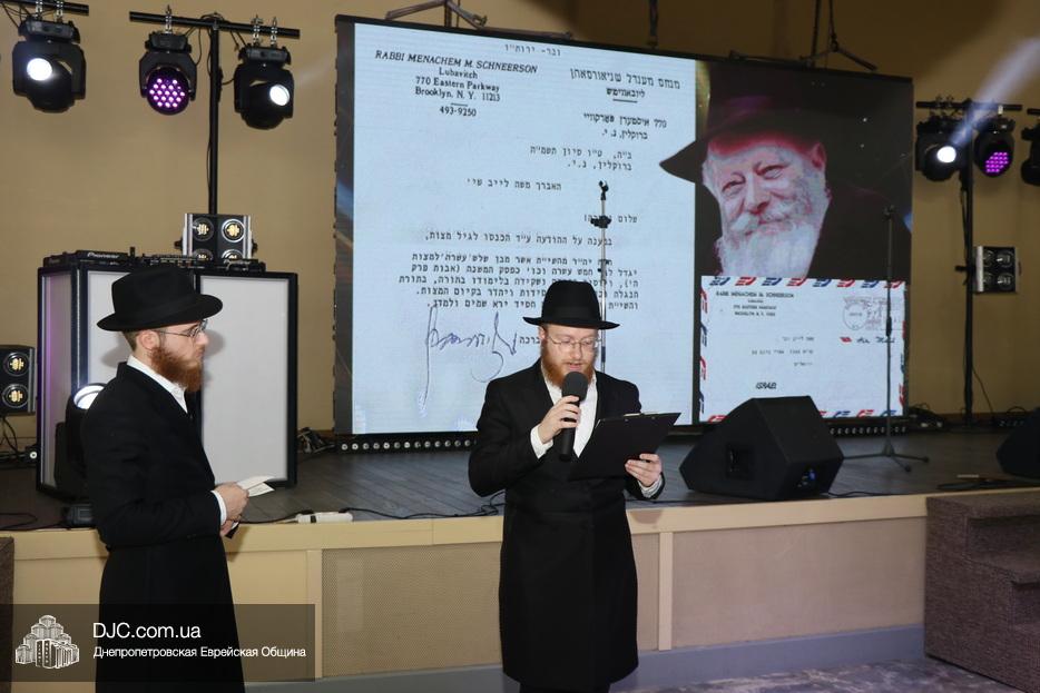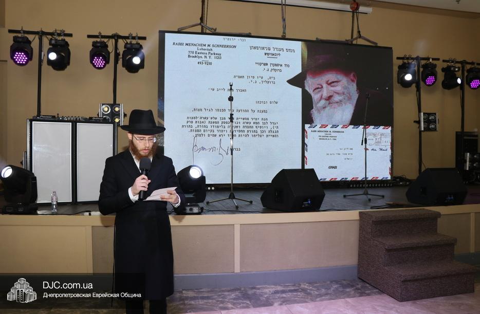 Важным моментом стало чтение особого письма-благословения того самого, которое в свое время Ребе отправил отцу Леви-Ицхака. Письмо и перевод зачитали его старшие братья – Менди и Ехиель. Вскоре гостям был представлен специально снятый фильм, в котором Леви-Ицхак рассказывал об истории своего великого тезки, раввина Леви-Ицхака Шнеерсона.