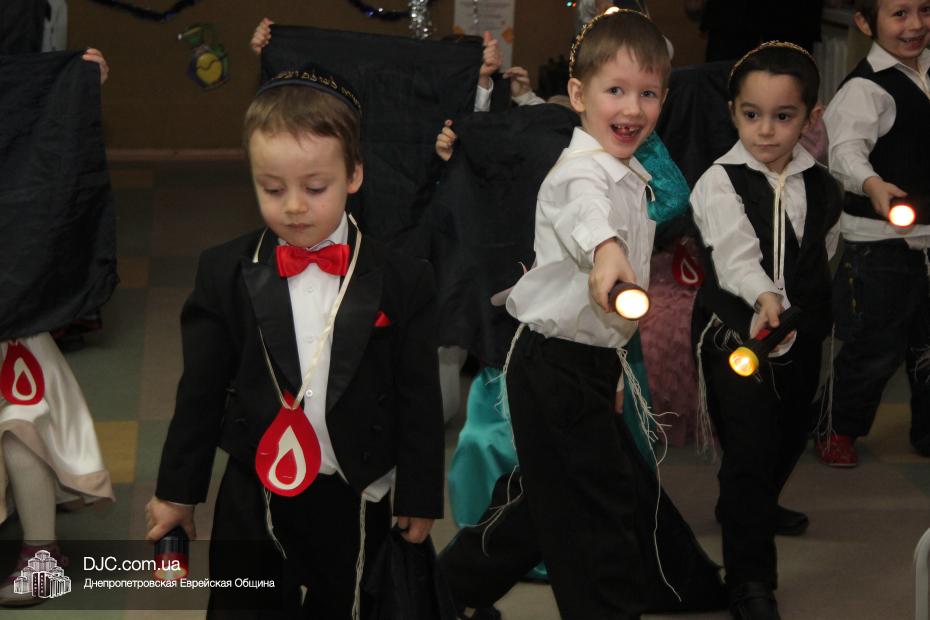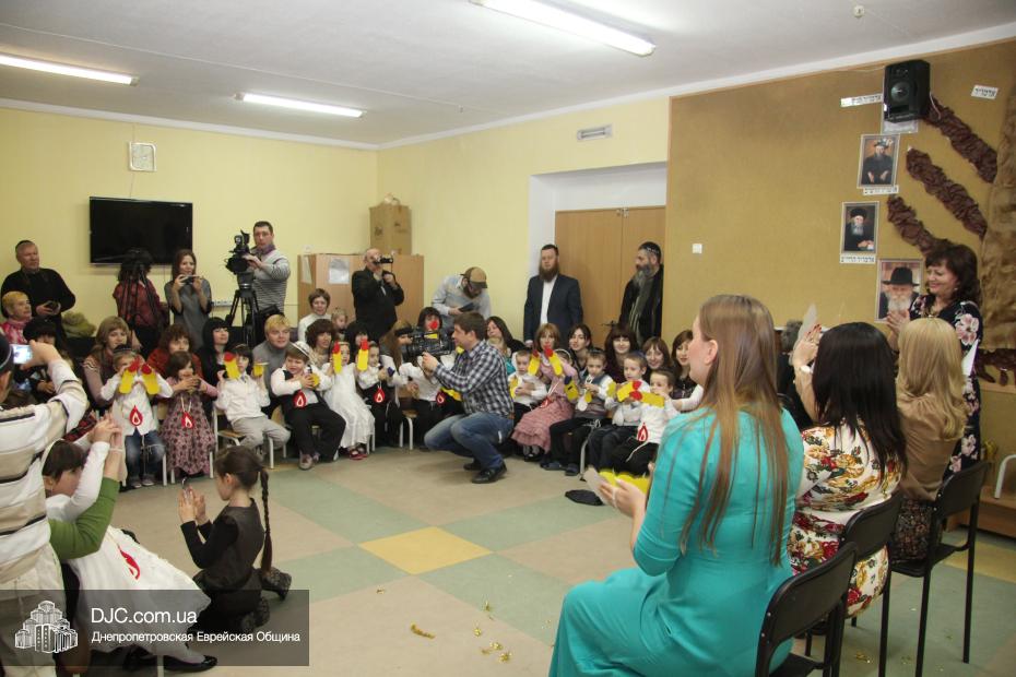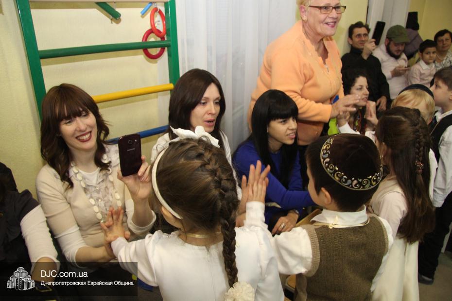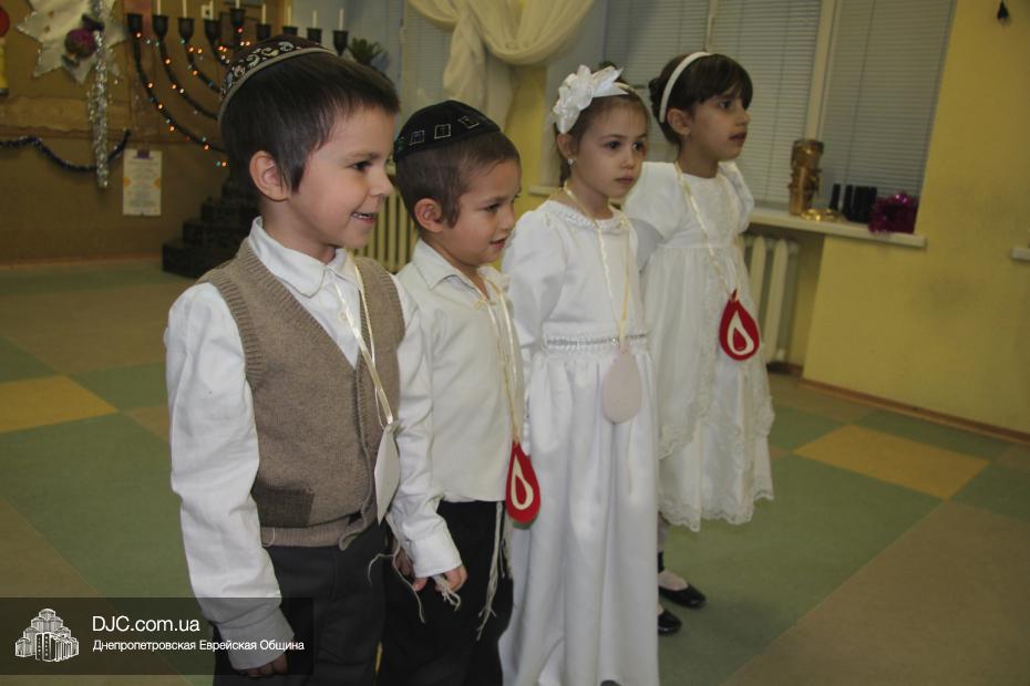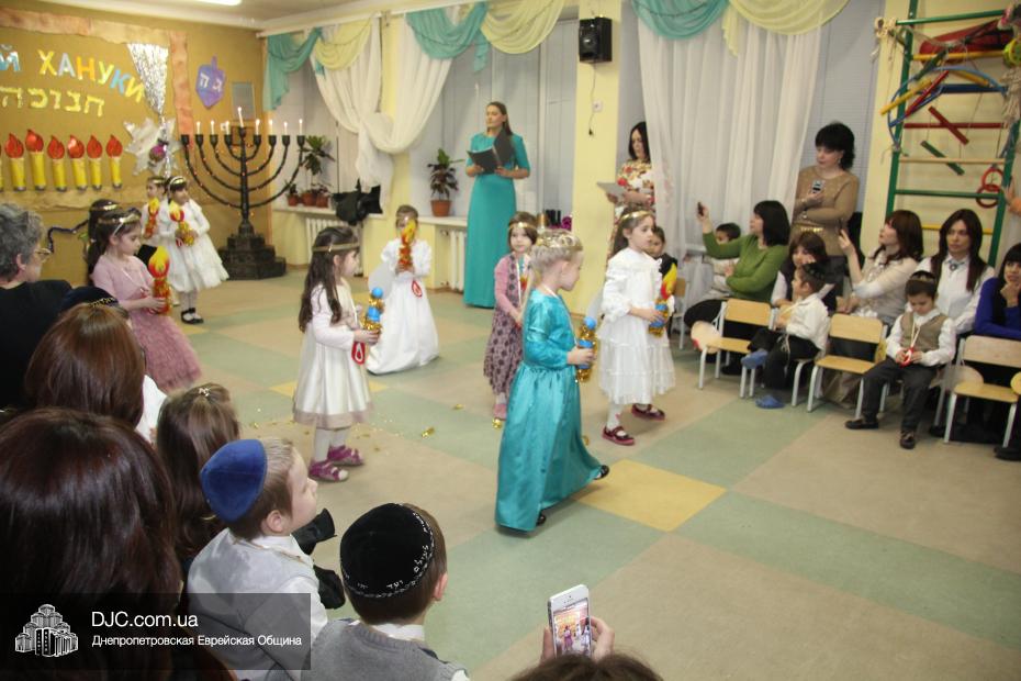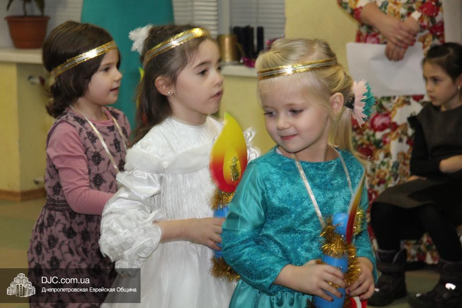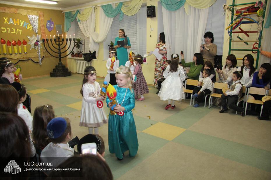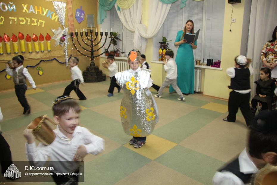 Перед своими гостями – мамами и папами, бабушками и дедушками – малыши выступили с ханукальными стихами (причем многие из них были на иврите) и несколькими театрализованными номерами, в которых обыгрывались история Хануки и ее традиции – было и выступление с фонариками, и танец Маккавеев, и «танец ханукальных свечей». Кроме того, в программе праздника важное место занимали совместные игры с родителями – как объяснила нашему сайту одна из воспитательниц старшего хедера, Юлия Самодурова, было задумано, чтобы родители не только смотрели выступление своих малышей, но и сами были активными участниками ханукального праздника.