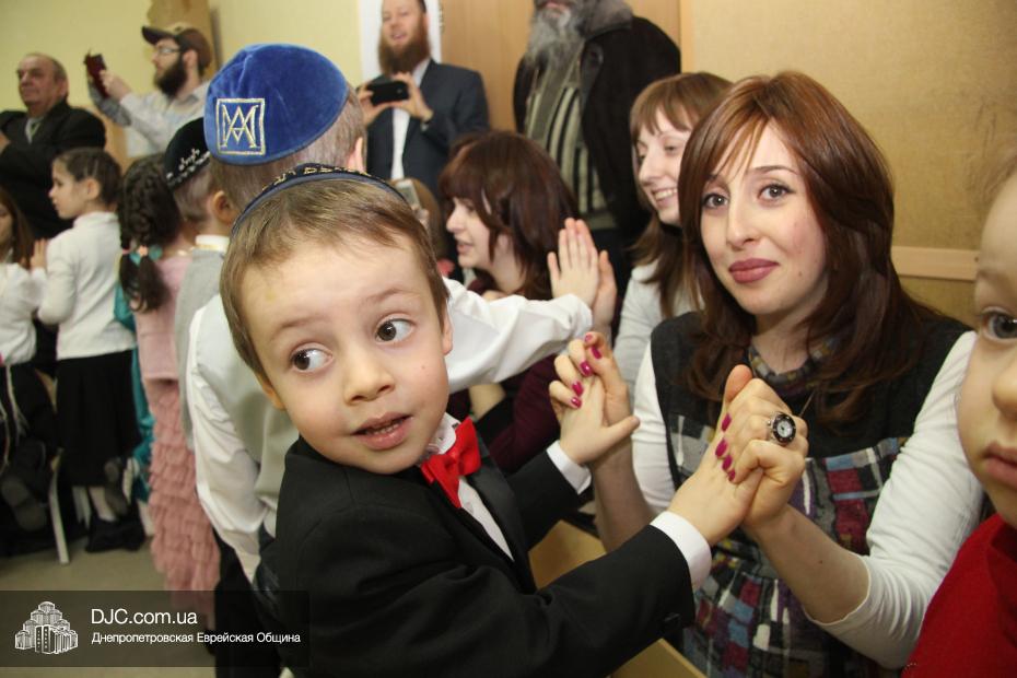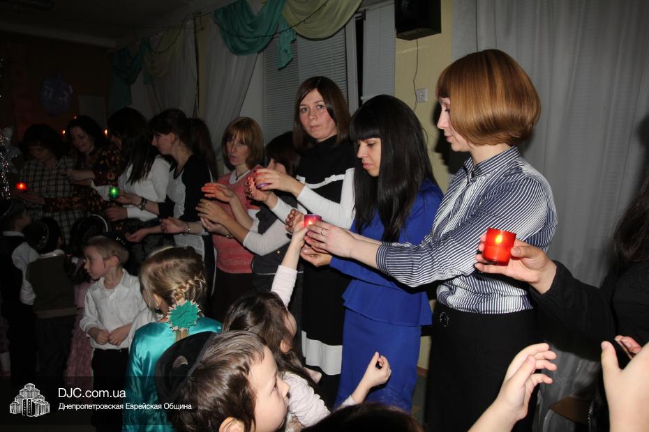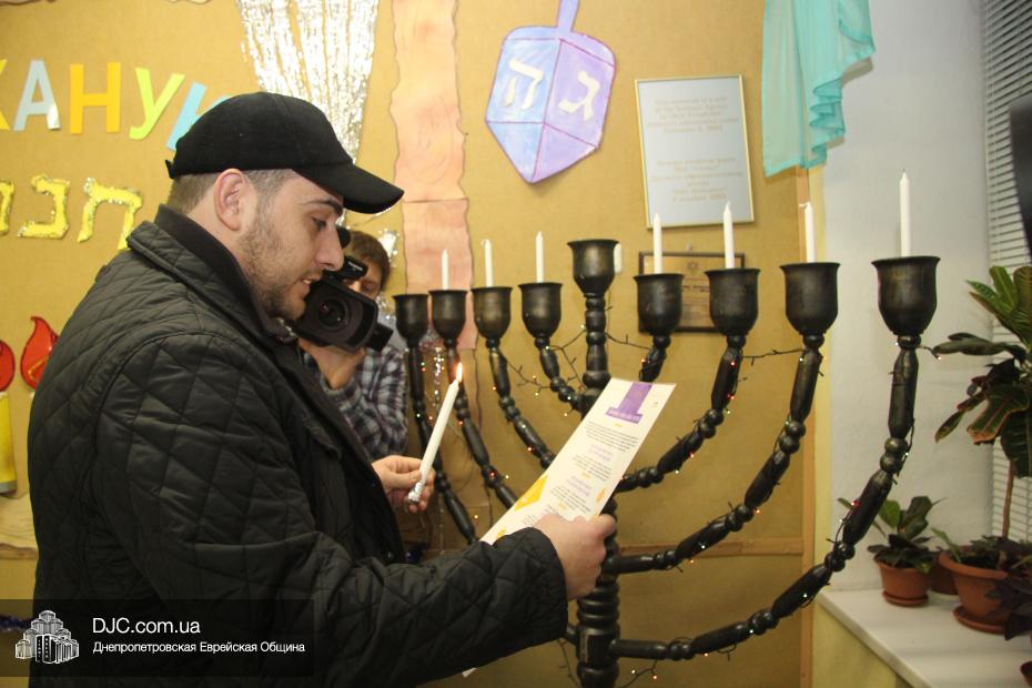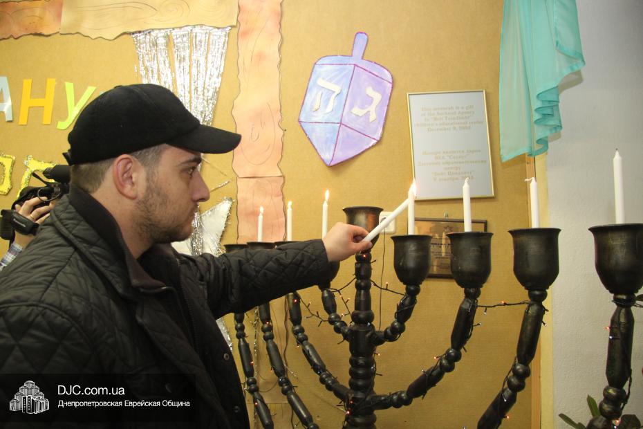 Честь провести церемонию зажжения Ханукии была предоставлена Давиду Абрамову – папе одной из воспитанниц хедера, Мины Абрамовой, который, прочитав благословения, зажег на Ханукальном светильнике семь свечей. После этого ребята, вместе со своими родителями, спели ханукальный гимн «Маоз Цур».