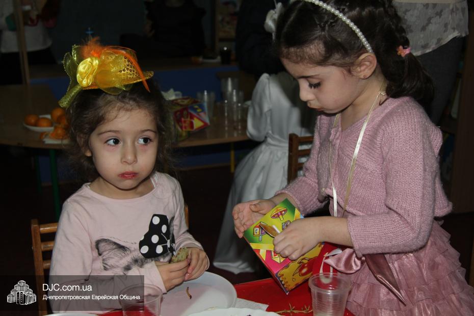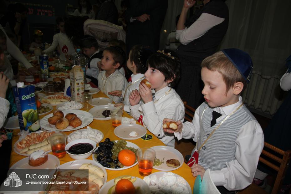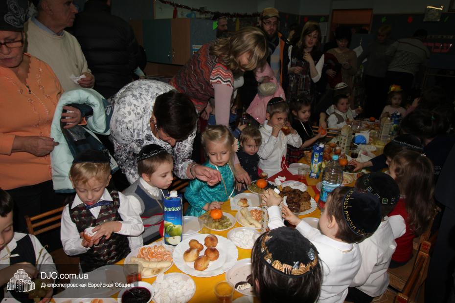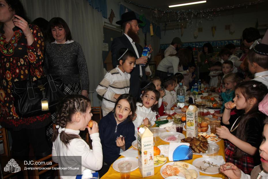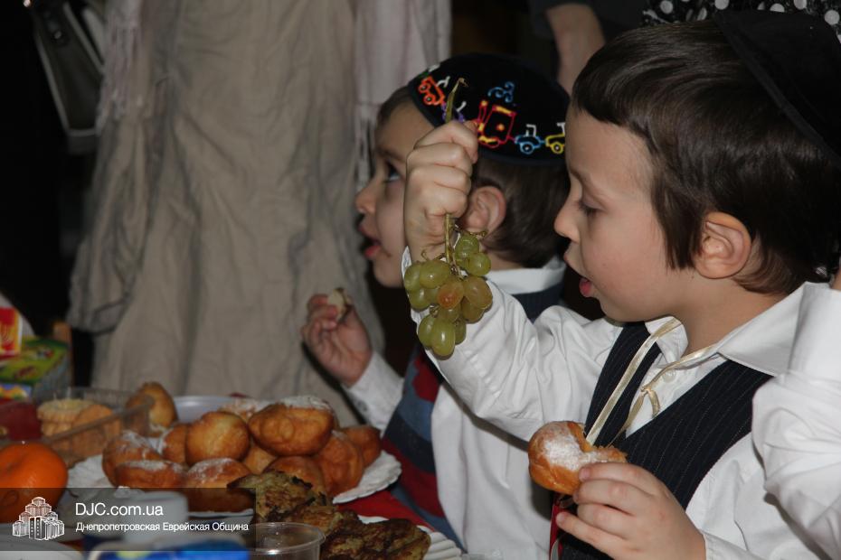 Кульминацией праздника стала раздача ханукальных подарков, которые были упакованы в особые коробочки, по своей форме очень похожие на савивоны, поэтому нераспакованным подарком можно было играть, вращая его, подобно волчку. В завершение праздника и малышей, и родителей ожидало традиционное праздничное угощение – суфганийот и латкес, которые принято вкушать в дни Хануки, поскольку эти блюда приготовлены на масле.