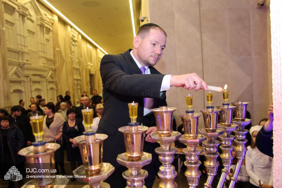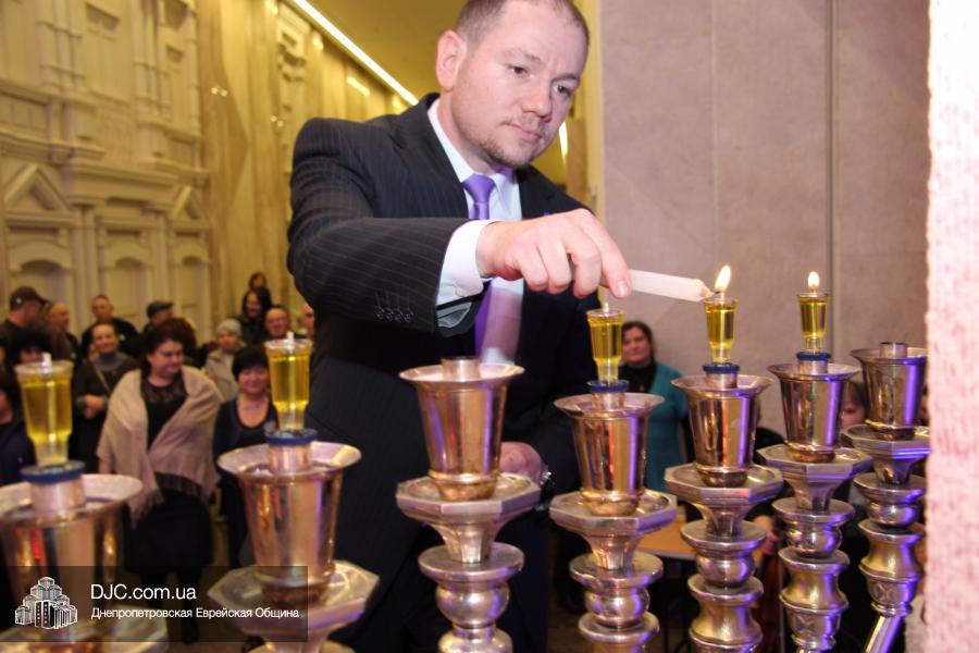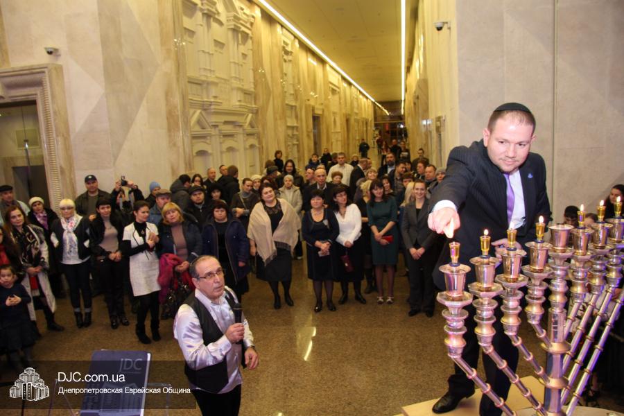 В крупнейшем в мире еврейском центре «Менора» состоялась церемония зажжения седьмой Ханукальной свечи. Честь зажечь огни на главной Ханукие Центра была предоставлена председателю правления комитета «Джойнт» в Восточном регионе Украины Йонатану Лейферу.