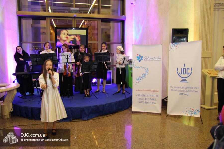 Затем перед собравшимися выступили юные артисты Еврейского Культурного Центра «Solomonika»: детский клейзмерский ансамбль «От Озой», который исполнил несколько еврейских композиций, и солистка детской группы вокальной студии «The Best» Соня Киселева, которая исполнила «Шалом, мой друг, шалом!», «Амен» и «Мечта».