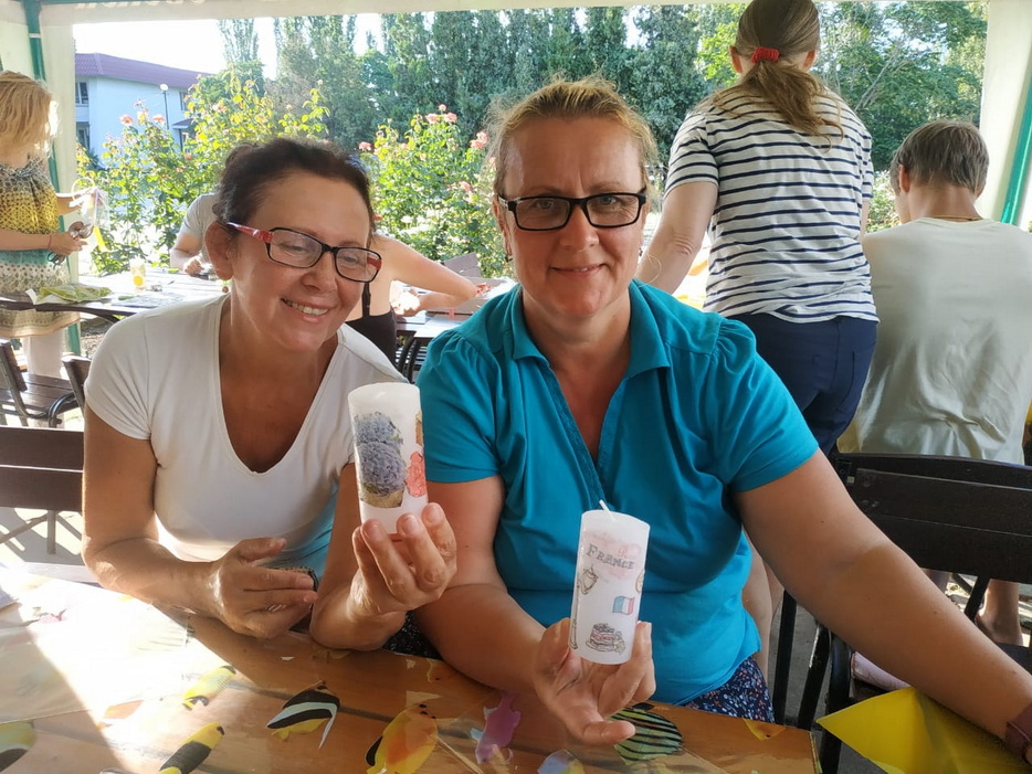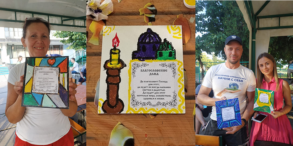 А мамы, бабушки и даже папы создают вместе с нашими педагогами свои шедевры – оформляют «Благословение дома», изготавливают свечи в технике декупаж.