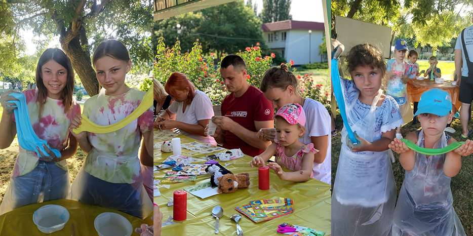 И взрослые, и дети активно участвуют в жизни лагеря, с радостью посещая оригинальные мастер-классы «Очумелые ручки» от команды «Тиккун Олам», познавательные групповые занятия, душевные вечерние встречи и развлекательные мероприятия. В нашем лагере уже состоялась фееричная пенная вечеринка, общий киносеанс, оригинальный кулинарный мастер-класс «Коммунальная кухня», взрослые и дети с интересом создавали красочные рисунки на футболках с помощью популярной техники тай-дай. Дети собственноручно изготовили разноцветные слаймы. Ребята выучили популярную песню нашего лагеря «Семейный ковчег» и порадовали всех красивым выступлением на сцене.
