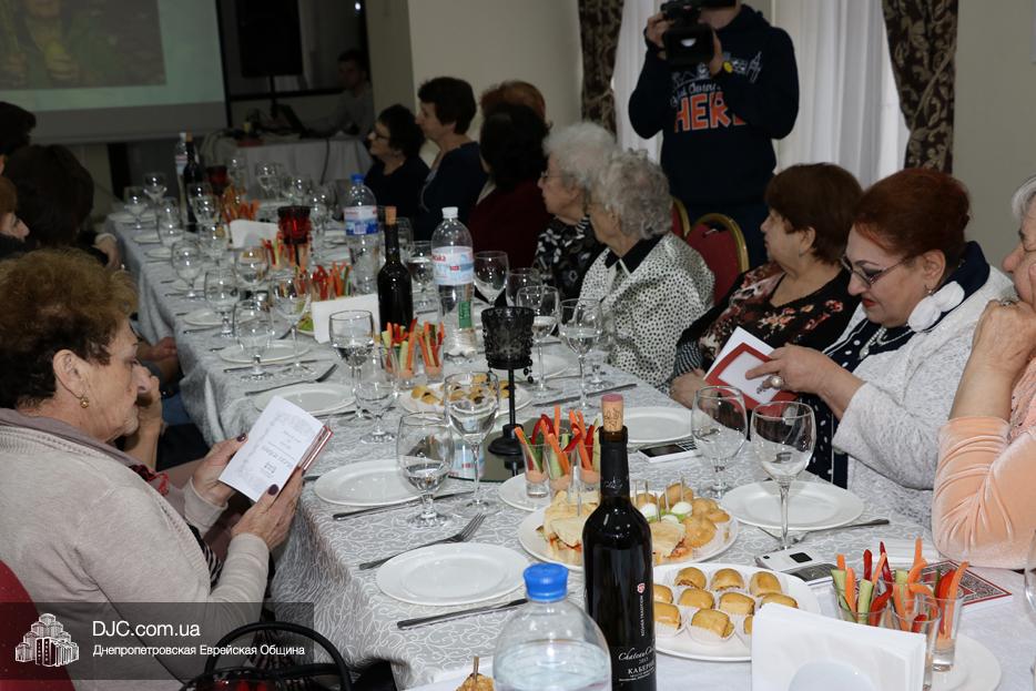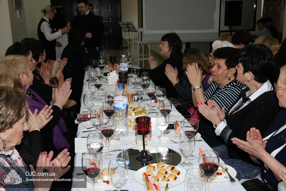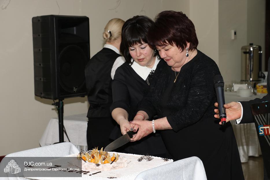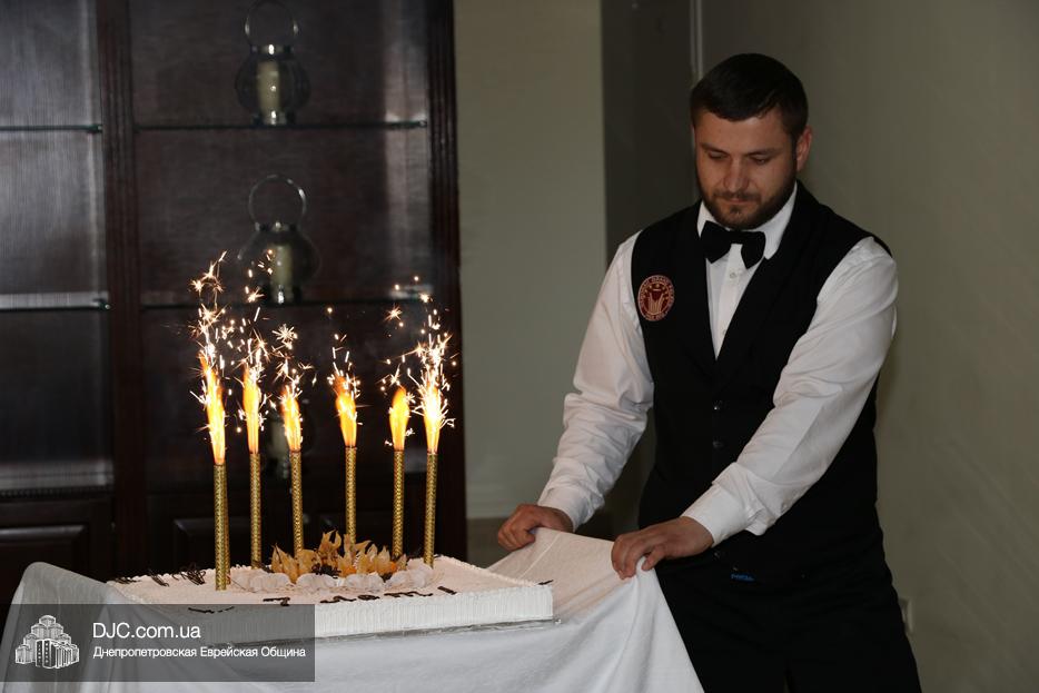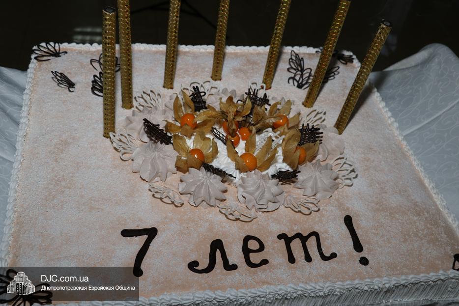 Кульминацией праздника стало внесение именинного торта, украшенного семью «римскими свечами» и со специальной надписью, который торжественно разрезали Рохл Заекина и Ора Павлоцкая.