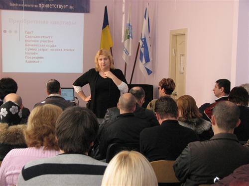 Представительство Еврейского Агентства «Сохнут» провело однодневный семинар по проблематике аренды или приобретения жилья в государстве Израиль, а также о работе системы медицинского страхования и больничных касс в еврейском государстве. Семинар проходил в офисе Еврейского Агентства, и лекции на нем читала глава представительства Елена Збаржевски.