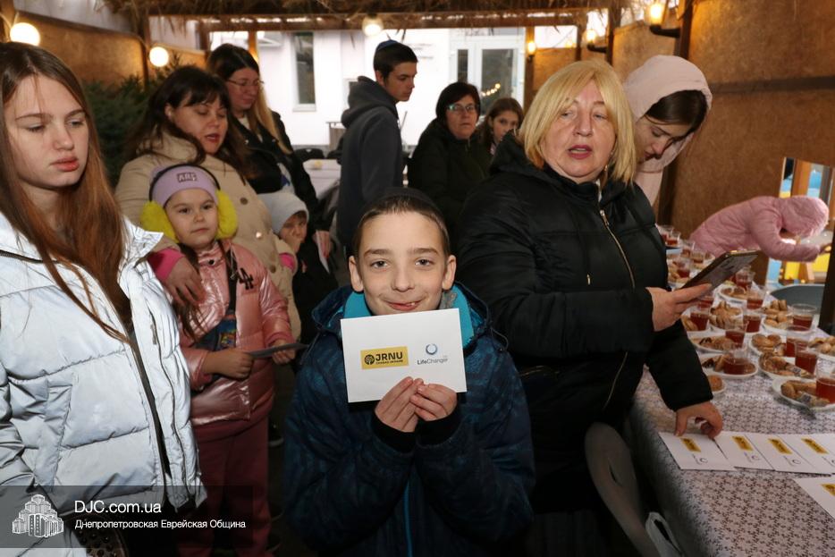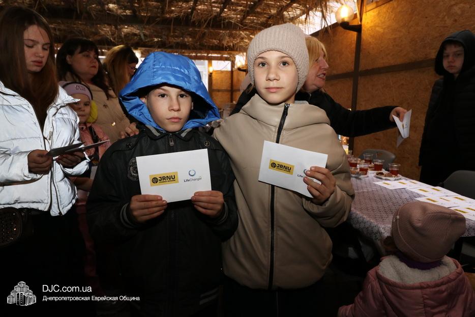В этом году в праздник Суккот Еврейская община Днепра, благодаря поддержке благотворительных фондов LifeChanger и Jewish Relief Network Ukraine (JRNU), организовала выдачу продуктовых сертификатов для детей членов общины. Эта инициатива охватила многодетные и малообеспеченные семьи, семьи с детьми до 3 лет, а также тех, кто посещает детский сад и школу.