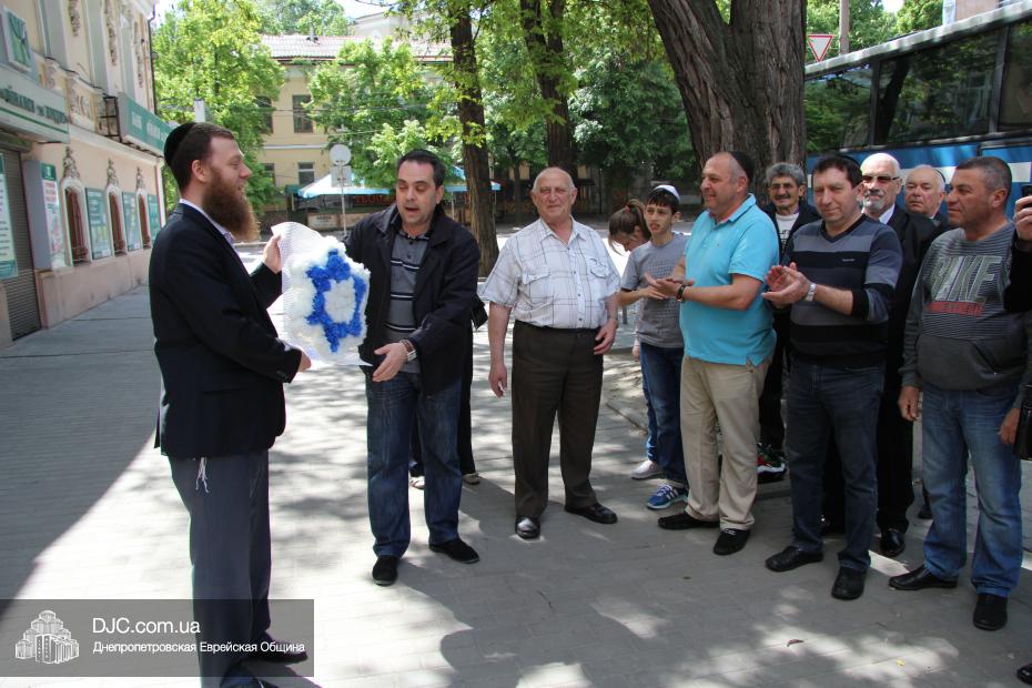 Перед отъездом делегация общины Кременчуга вручила Днепропетровской еврейской общине, в лице Элиши Павлоцкого, памятный подарок – сделанный руками детей Кременчуга символ еврейского народа – голубую звезду Давида.