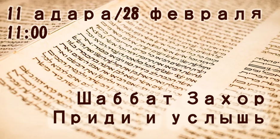 Эта суббота – перед наступлением праздника Пурим – имеет особое значение в иудаизме и называется «Шабат Захор». Очень важно всем – мужчинам, женщинам и детям – прийти в синагогу и прослушать отрывок «Захор», что означает «Помни» о тех преступлениях, который сделал еврейскому народу Амалек и его потомки, в том числе и Аман в дни царя Ахашвероша, и все «Аманы» в других поколениях.
