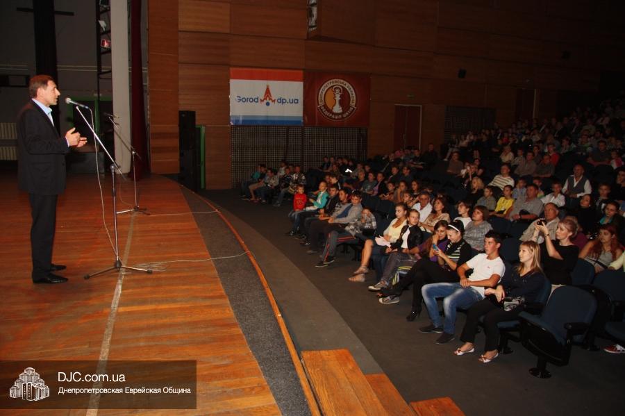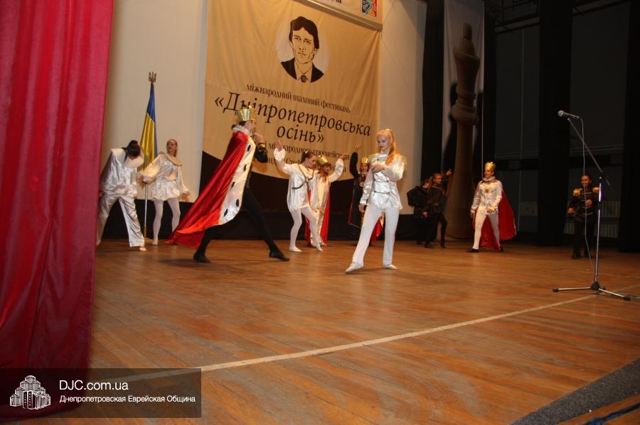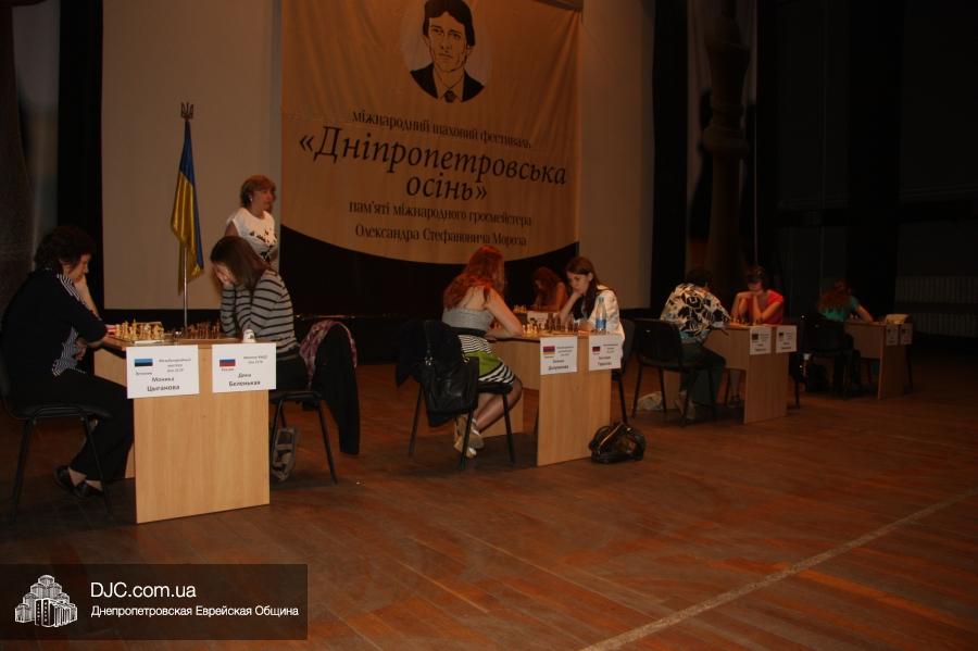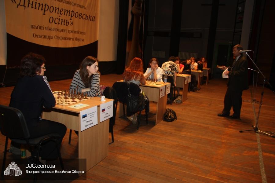 После того, как Вячеслав Мишалов объявил турнир открытым, начался первый тур. Местом женского гроссмейстерского турнира стала сцена киноконцертного зала, а залы и холлы были отданы отрытому чемпионату области и детскому турниру. Результаты каждого тура, полные списки участников и другая текущая информация публикуется на сайте dneprchess.at.ua, а мы желаем успеха представителям еврейской общины, принимающим участие в турнирах, особенно нашим детям.