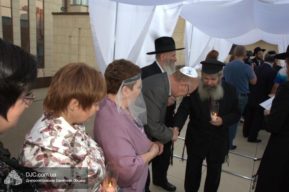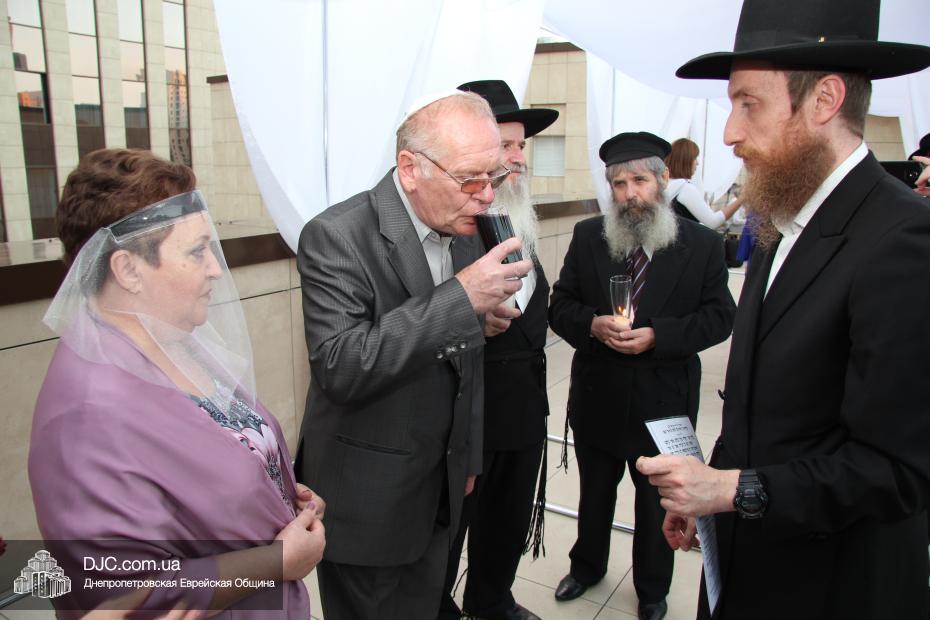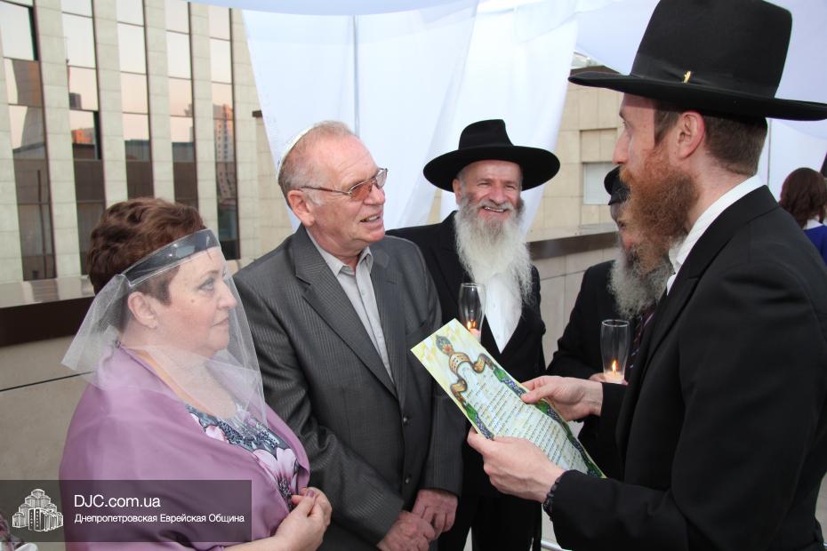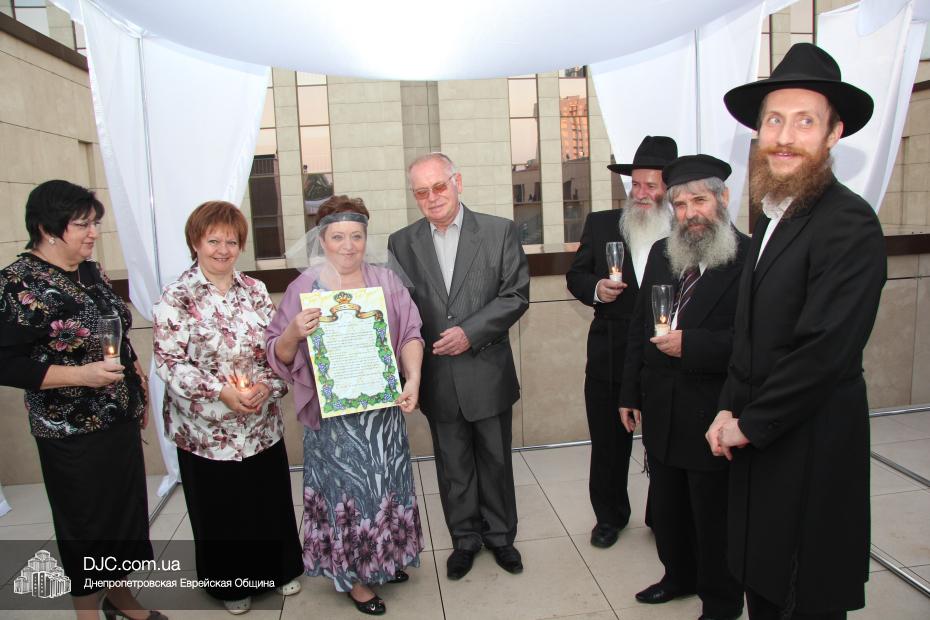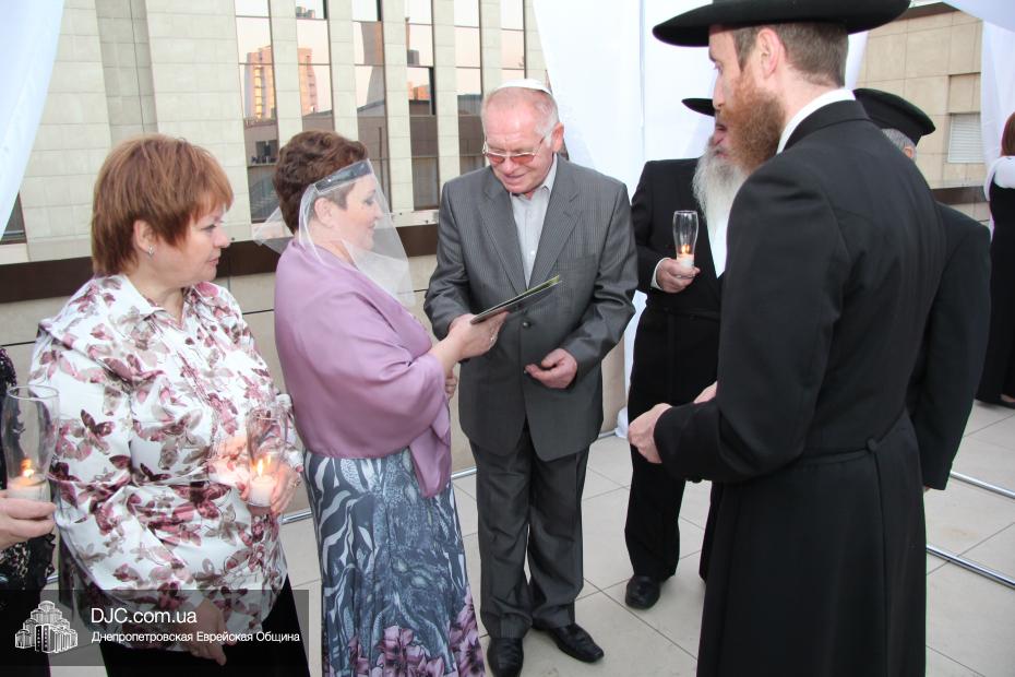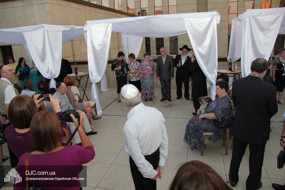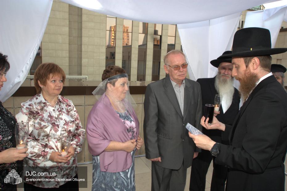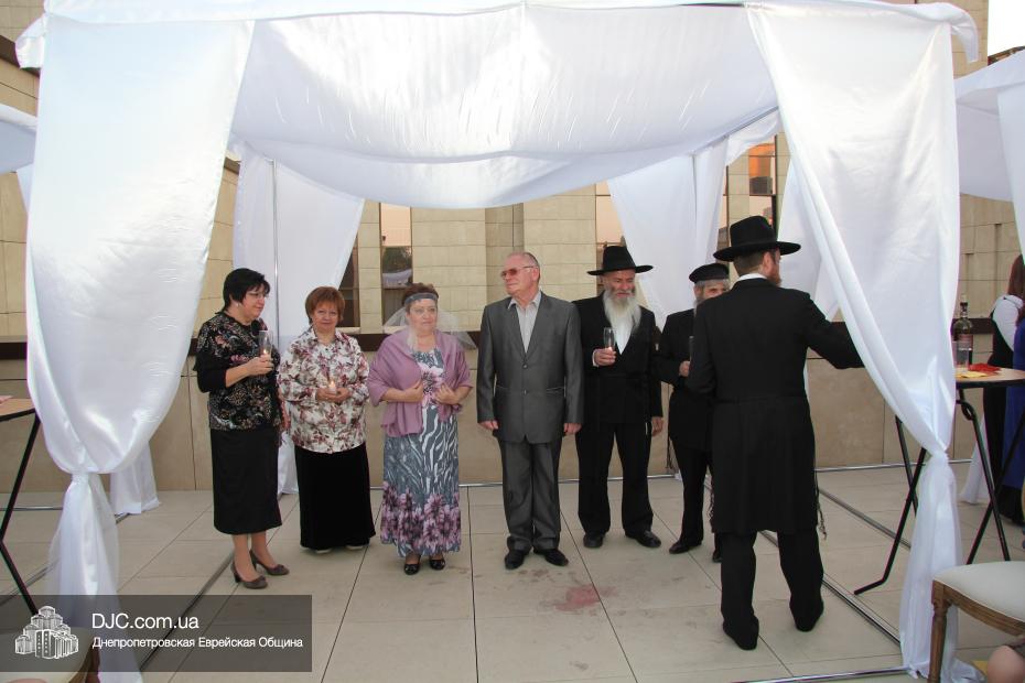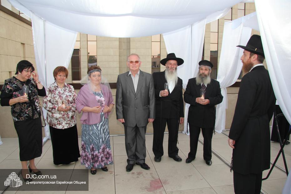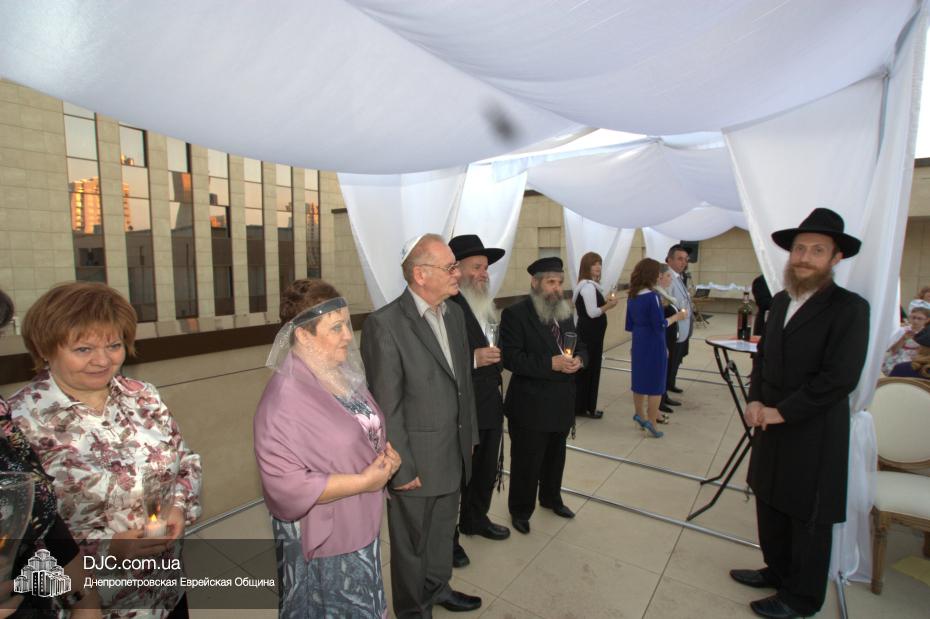 История этой семьи началась летом 1970 года с обычной поездки в лес. На теплоходе разговорились еврейские парень и девушка и осенью возникла семья. Почти 45 лет прожили они душа в душу, воспитали двух дочерей, а внучка уже живет на Святой Земле. Чтобы повести эту пару под свадебный балдахин из Израиля прибыла семья Розенштейн, также уроженцы Днепропетровска, которые сейчас много времени уделяют пропаганде заповеди «Тагарат а-Мишпаха», а Рухама Розенштейн, координатор организации «Апирьон», была одной из идейных вдохновительниц всего проекта «Шатры Израиля».