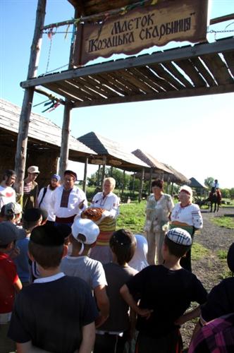 «Это живописное место, — рассказывает Акива Романовский, один из организаторов лагеря, — хозяева встретили нас красивым украинским и кошерным караваем. Ребятам показали музей козачества и быта, ярмарку народных промыслов, они смогли принять участие в мастер-классе петриковской росписи. Конечно же, для наших мальчишек самым увлекательным было катание на лошадях и стрельба из луков. Весь этот день ребятам запомнился, они узнали очень много нового и интересного».