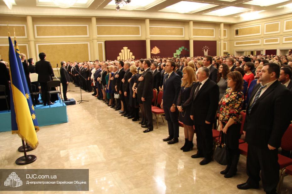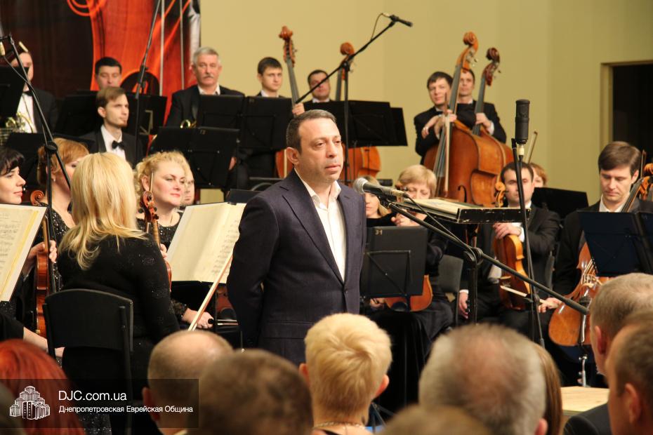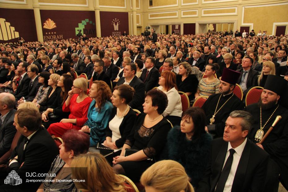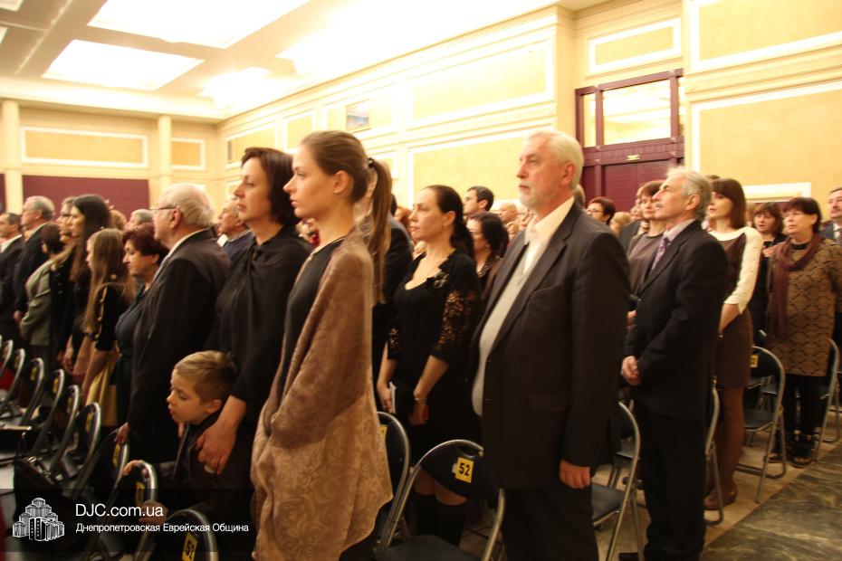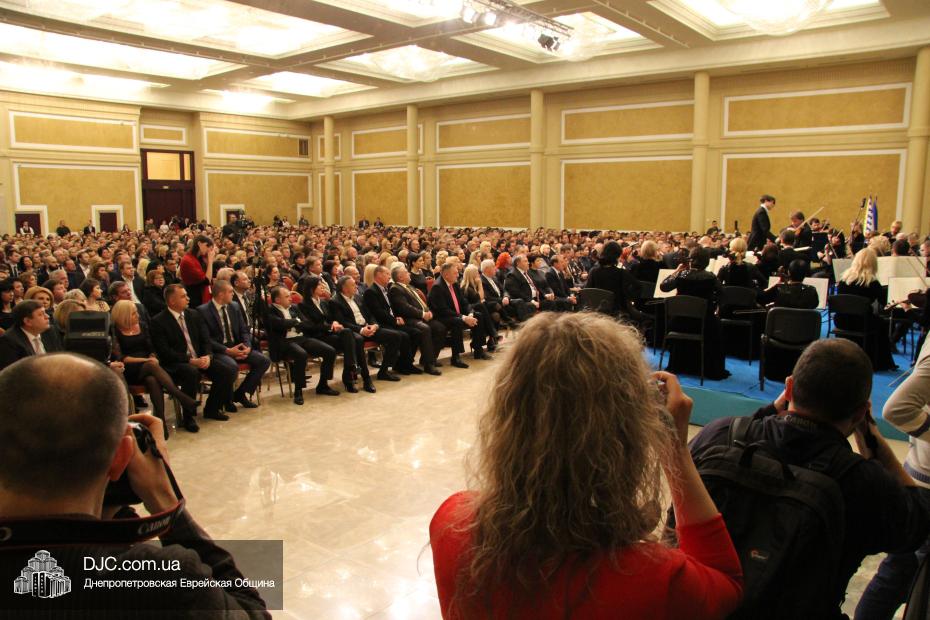 Огромный зал «Menorah Grand Hall» для большинства пришедших был открытием, его великолепие и утонченная роскошь поразили всех. Перед началом концерта выступил советник губернатора Борис Трейгерман, затем прозвучал гимн, после чего слово было предоставлено заместителю председателя – руководителю аппарата облгосадминистрации Геннадию Корбану.