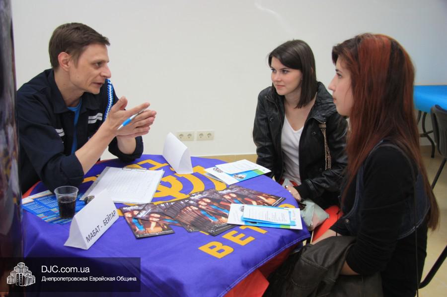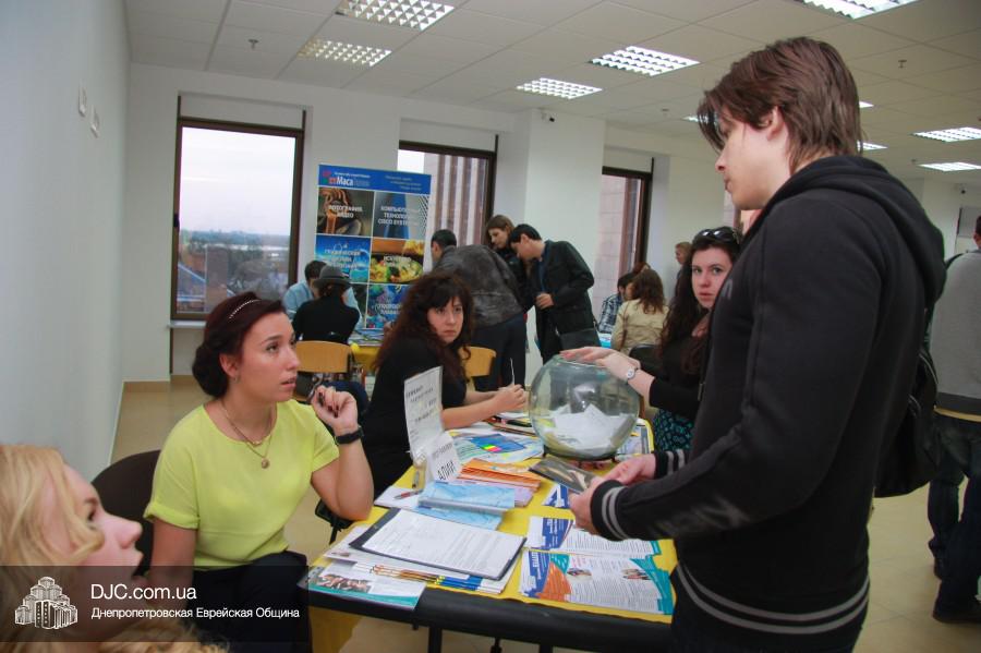 Днепропетровский филиал «Сохнут-Украина» провел в крупнейшем в мире еврейском центре «Менора» ежегодную ярмарку вариантов участия, для молодежи от 18 до 30 лет из стран диаспоры, в образовательной программе МАСА. Все они позволяют юношам и девушкам продолжить, расширить или углубить свое образование, пройдя профессиональную стажировку в Израиле сроком от 5 до 10 месяцев, не говоря о том, что это – прекрасный способ пожить в Израиле и познакомиться с этим государством и его жителями, расширяя свой кругозор и укрепляя свою еврейскую самоидентификацию.
