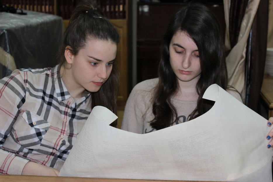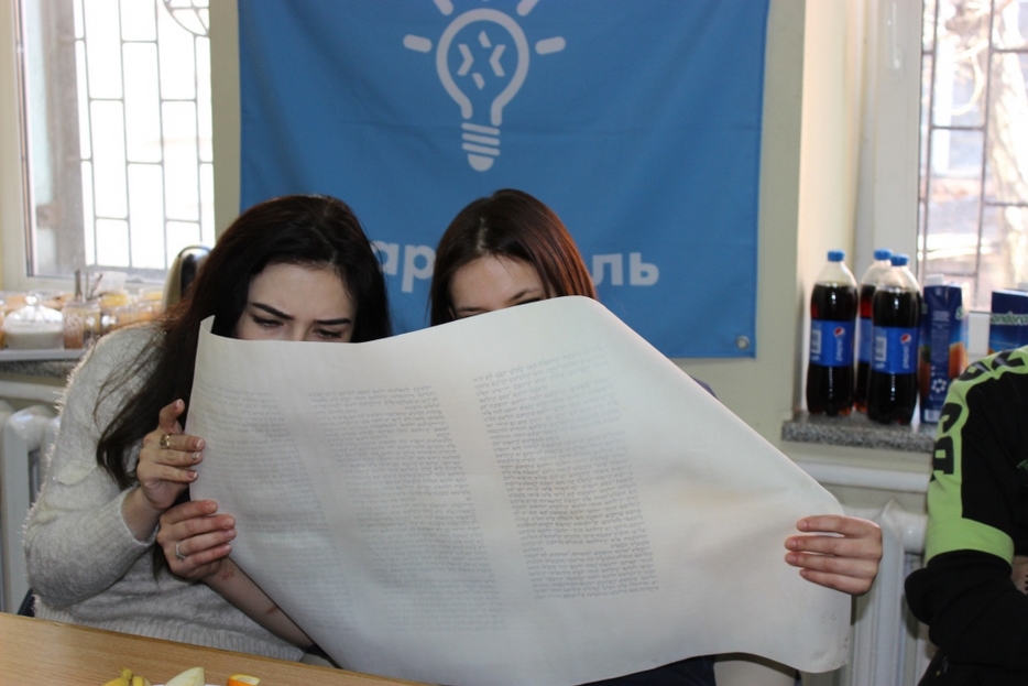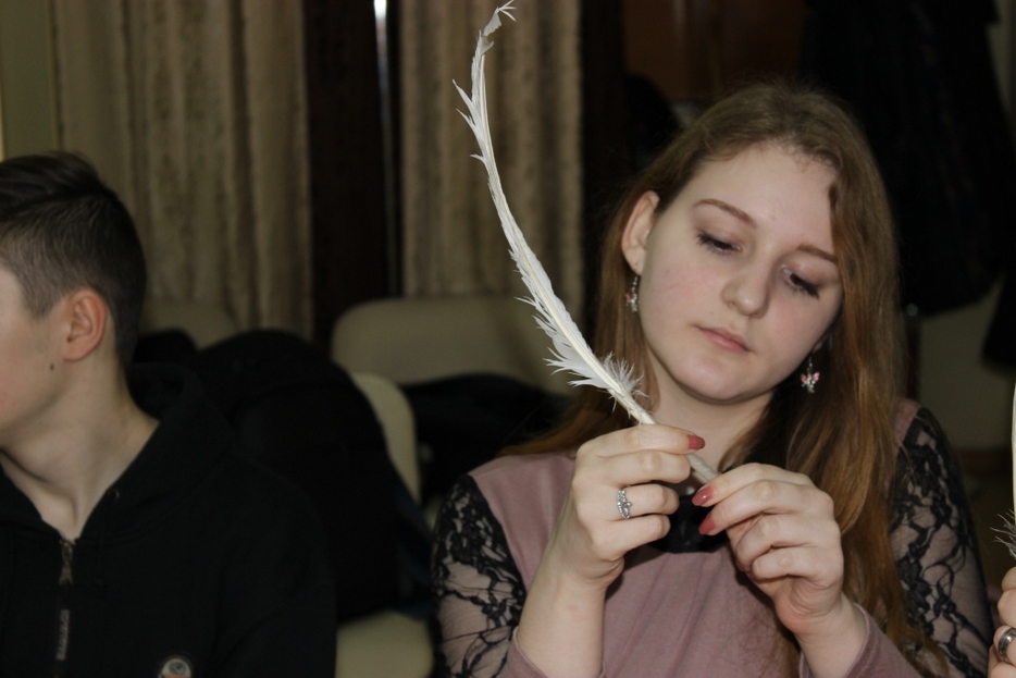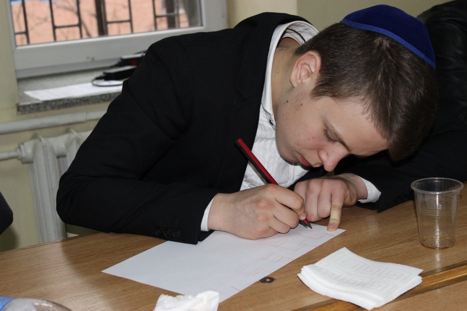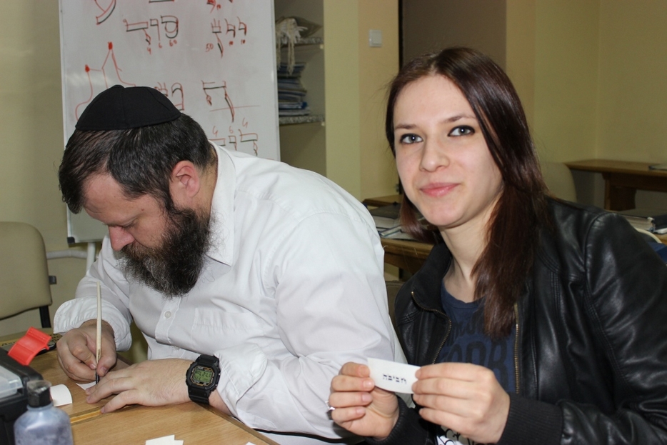 «Нам очень понравилось занятие с реб Давидом, ребята и девушки были в восторге от его талантов, его обаяния, его юмора, – рассказала нашему сайту Алиса Ростовцева, координатор общинных программ, – встреча была поделена на две части. В первой части, «теоретической», он рассказал о том, как пишутся свитки Торы, мезузы и тфиллины, дал каждому возможность рассмотреть и подержать в руках материалы и инструменты своей работы. Ребята с удовольствием рассматривали перья и свитки.