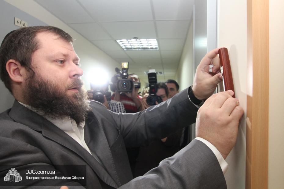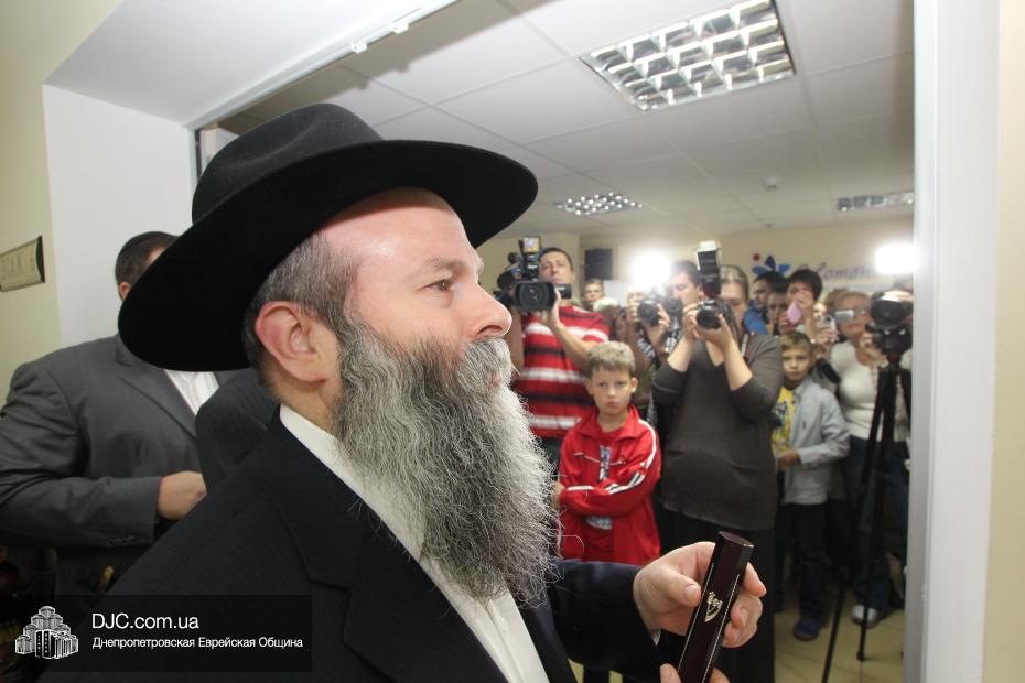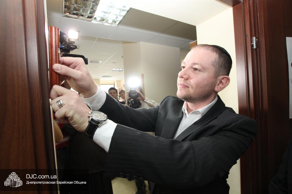 Честь прибить первую мезузу у главного входа в центр «Соломоника» была предоставлена Главному раввину Днепропетровска и региона Шмуэлю Каминецкому. Вторая мезуза была прикреплена у входа в творческие мастерские «Соломоники», и эту церемонию провел Председатель правления центра «Джойнт» в Восточной Украине Йонатан Лейфер. Честь прикрепить третью мезузу в переходе шестого этажа, у входа на ресепшн направления «Solomonika Kids», была предоставлена сойферу Давиду Мануйлову, который написал все три торжественно установленные мезузы и который является мужем Хагит Мануйловой, заместителя директора центра «Соломоника» по еврейскому наполнению.