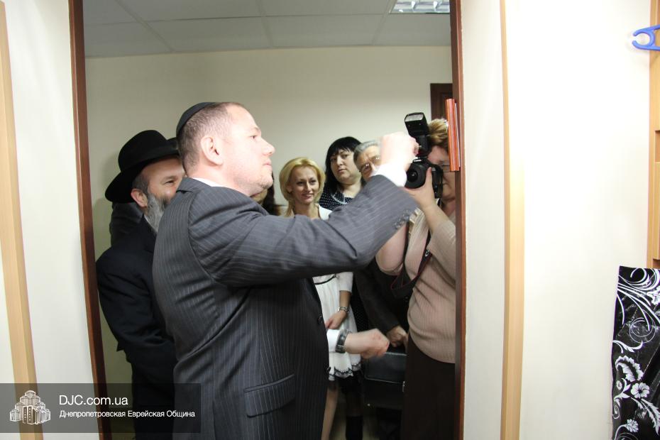После прикрепления мезуз состоялась небольшая экскурсия для почетных гостей по помещениям центра «Соломоника». Йонатан Лейфер рассказал о концепции и программах, предлагаемых центром, о возможностях, которые «Solomonika» предоставляет для различных социальных групп и возрастных категорий, и о том, как идишкайт будет интегрирован во все программы «Соломоники» – от спорта до искусства. Руководителям еврейских организаций Днепропетровска была представлена директор центра «Solomonika» – госпожа Марина Толкач – и руководители его основных направлений.