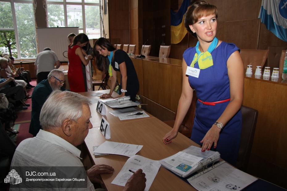 На собрание, которое проводили председатель Жовтневого совета ветеранов генерал-майор Анатолий Васильков и Юлия Соседка, был приглашен и председатель Совета евреев-ветеранов Днепропетровска полковник Соломон Флакс. Было принято совместное решение, что совет евреев-ветеранов также будет включен в программу и предоставит к следующему месяцу список самых малообеспеченных членов организации. Они получат помощь по этой программе дважды – в августе и сентябре, а затем произойдет ротация, одновременно с ветеранской организацией Жовтневого района.