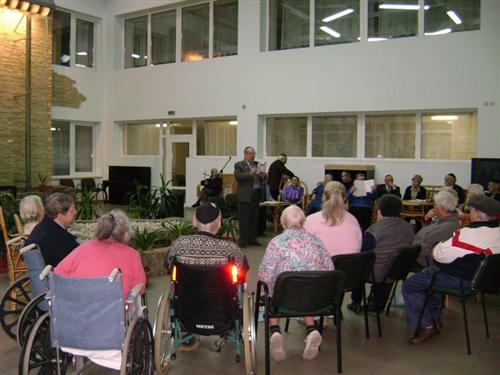 «Председатель Совета ветеранов Соломон Флакс сердечно поздравил всех жильцов с праздником Ханука, пожелал доброго здоровья, долголетия и активной жизни. Он сказал, что Совет ветеранов, как и вся городская еврейская община, гордится Домом пожилых людей «Бейт Барух», что приятно видеть весёлые лица, а также прекрасные условия, в которых живут люди, заслужившие внимание общины. Он горячо поблагодарил обслуживающий персонал Дома, во главе с директором Александрой Кижнер.