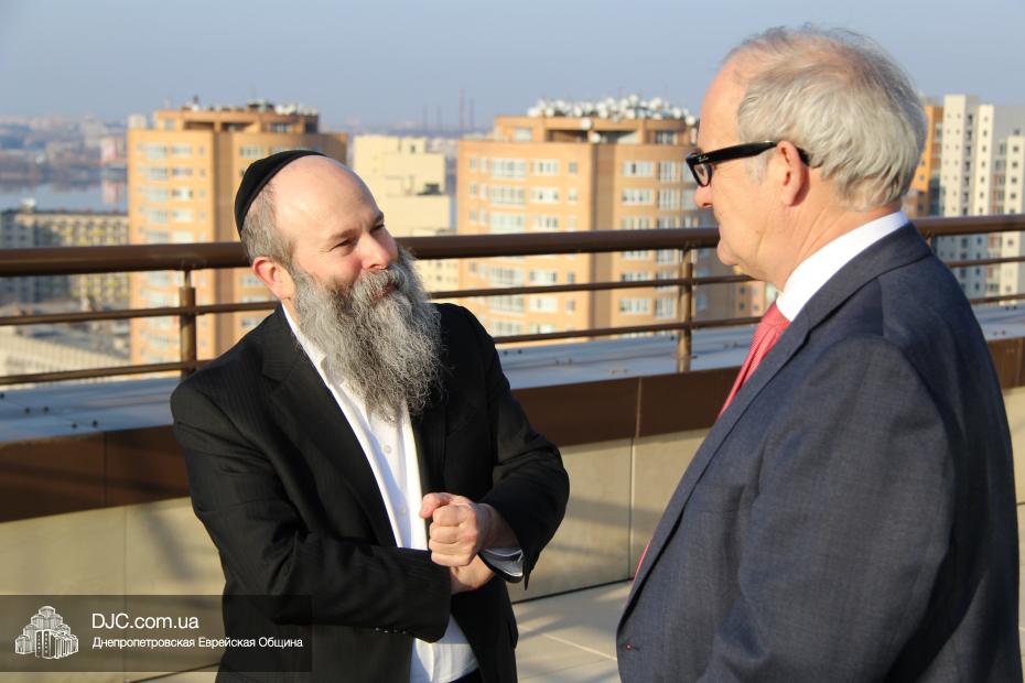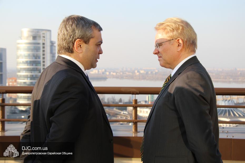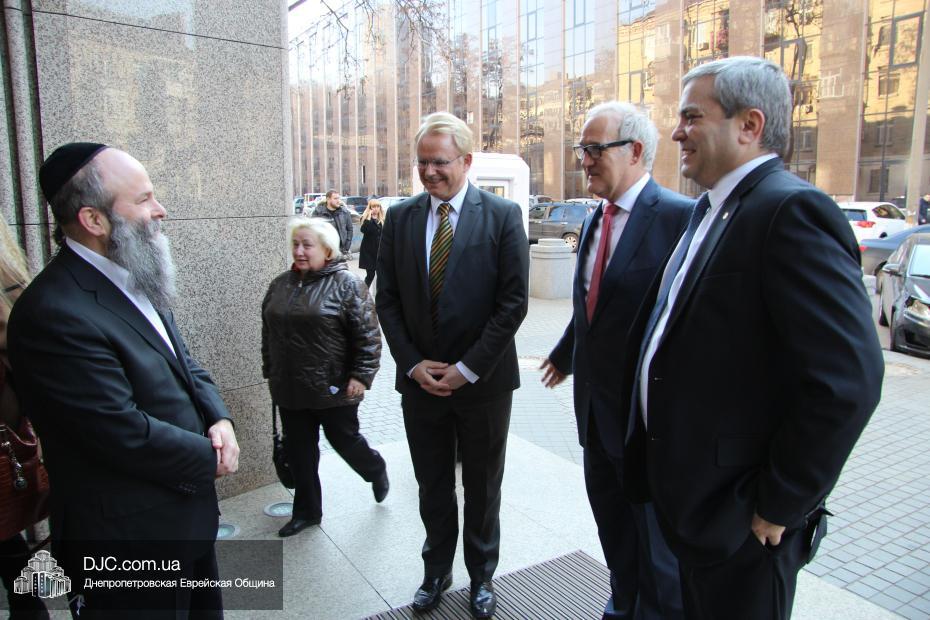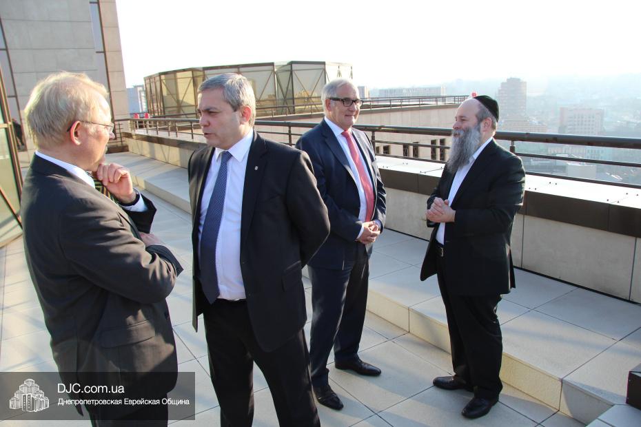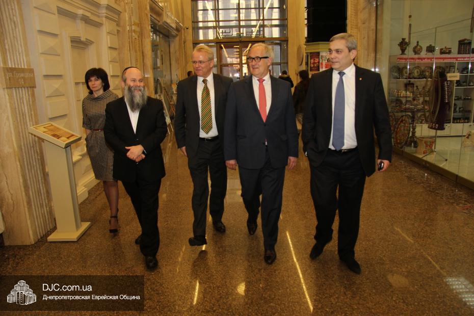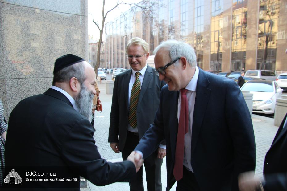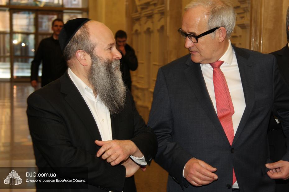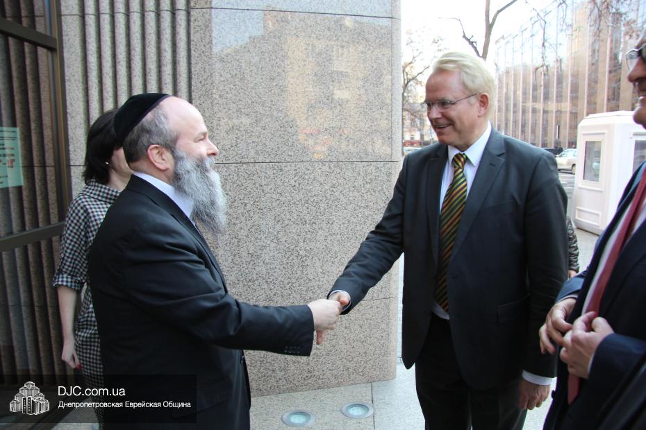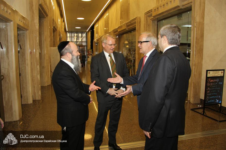 Посол Йоханнес Регенбрехт отметил, что ситуация на Днепропетровщине сверхтяжелая, не только в плане конфликта, но и в экономической сфере, однако руководство области делает все, чтобы найти пути мирного решения конфликта и добавил, что является руководителем Рабочего штаба по вопросам Украины при МИДе Германии, который был создан в прошлом году для эффективного решения проблем в Украине. Раввин Каминецкий выразил благодарность руководству Германии за помощь и поддержку и высказал пожелание, чтобы она была всемерно усилена и расширена. «Евреи Украины надеются, что европейские государства, помня историю, не допустят повторения трагедии прошлого и помогут Украине на ее пути и поддержат ее стремление войти в семью свободных, европейских народов» – отметил раввин Каминецкий.