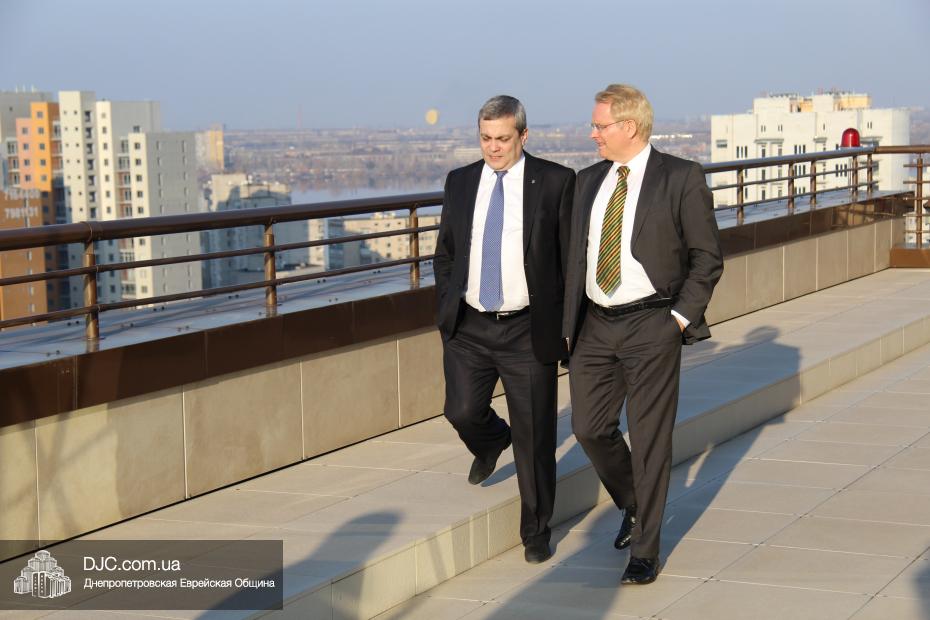 После краткого осмотра крупнейшего в мире еврейского центра «Менора» и ознакомления с позицией еврейской общины по самому широкому кругу актуальных вопросов состоялось обсуждение отношений между Германией и Днепропетровской областью и перспектив активизации европейской поддержки Украины в ее борьбе за независимость, территориальную целостность и европейский путь развития.