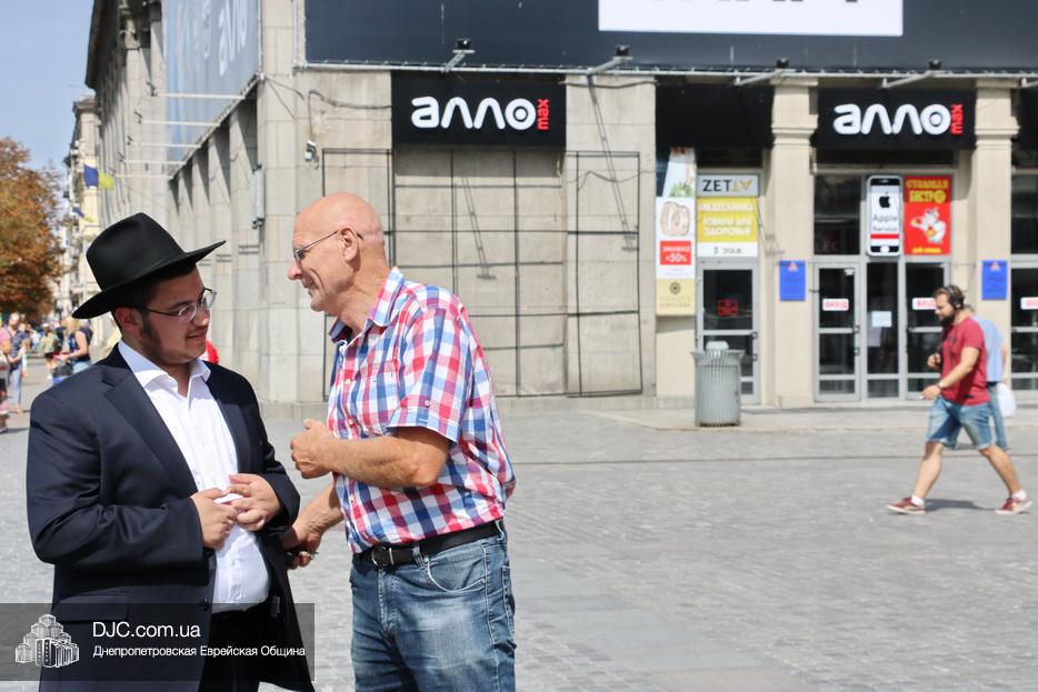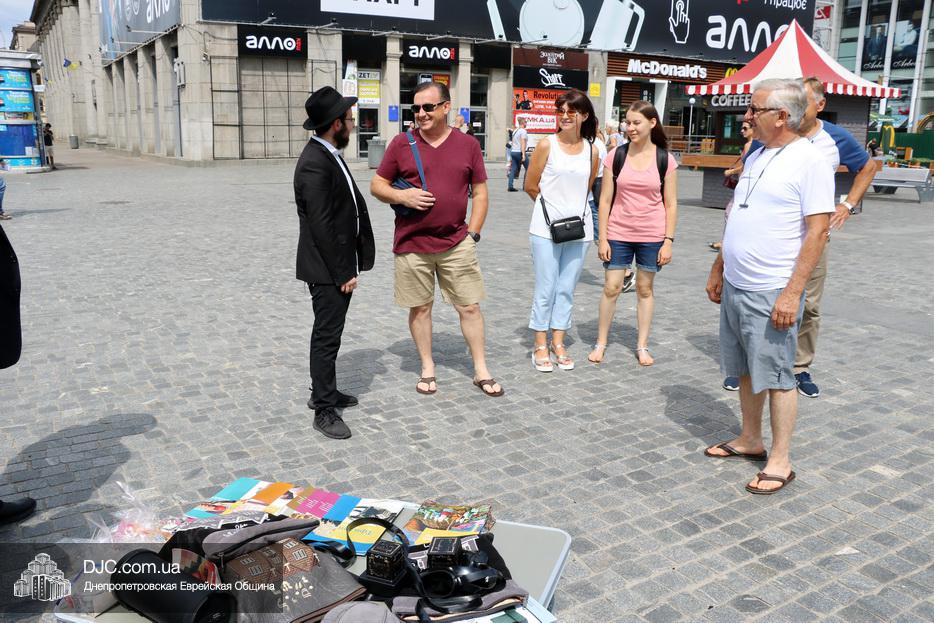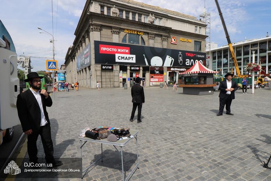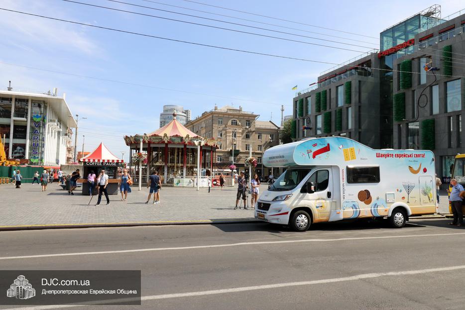Первой локацией мицво-мобиля в Днепре стала центральная площадь города – площадь Героев Майдана, кроме нее мицво-мобиль работал в парке имени Шевченко и на набережной. Вечером мицво-мобиль завершил свою работу на центральной площади города.