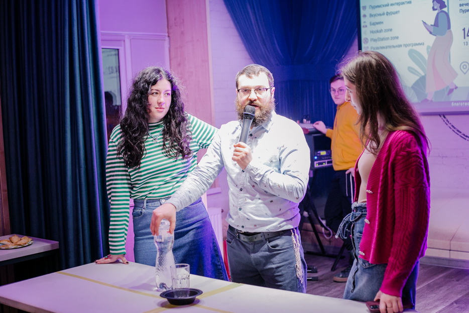 А еще в этот день принято устраивать праздничное застолье и делать «лехаим» – и это не просто традиция, а одна из основных мицвот этого праздника, для исполнения которой был приглашен профессиональный бармен, который провел мастер-класс по изготовлению коктейлей, а далее студенты сразились в батле по их приготовлению.