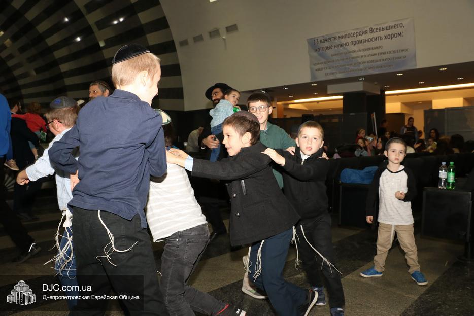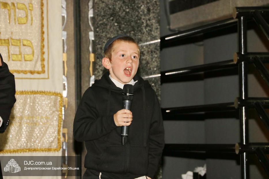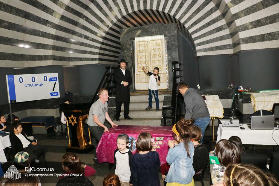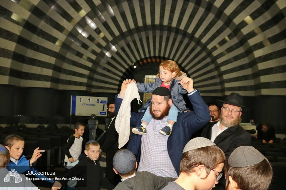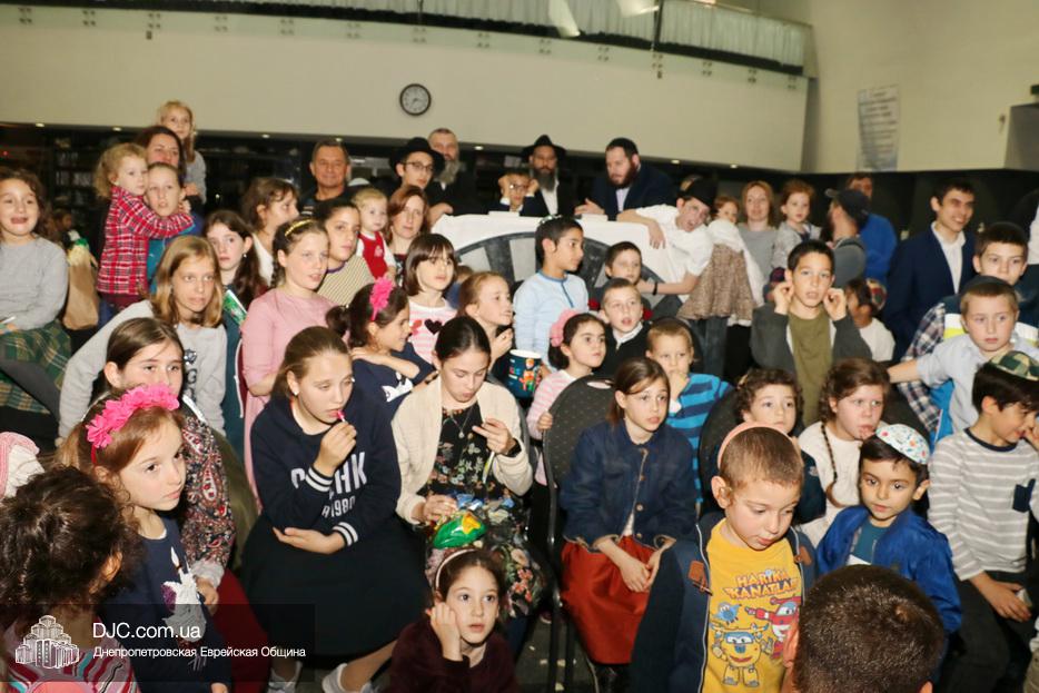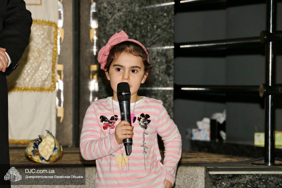 Затем дети расселись вокруг бимы, а к ним с речью обратился сначала раввин Мойше Лейб Вебер, который предоставил слово особому гостю праздника раввину аэропорта «Бен Гурион» (Израиль) Ниссиму Эльмалиаху, посетившему Днепр в период праздников месяца Тишрей.