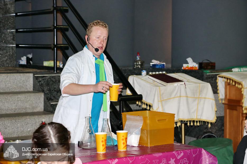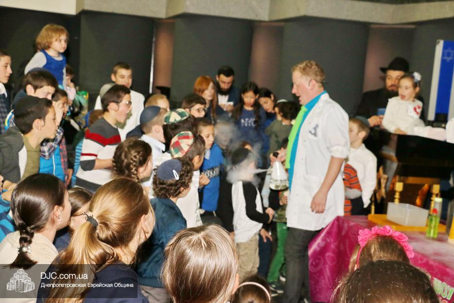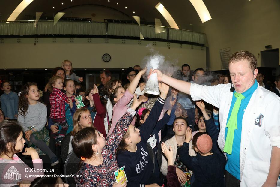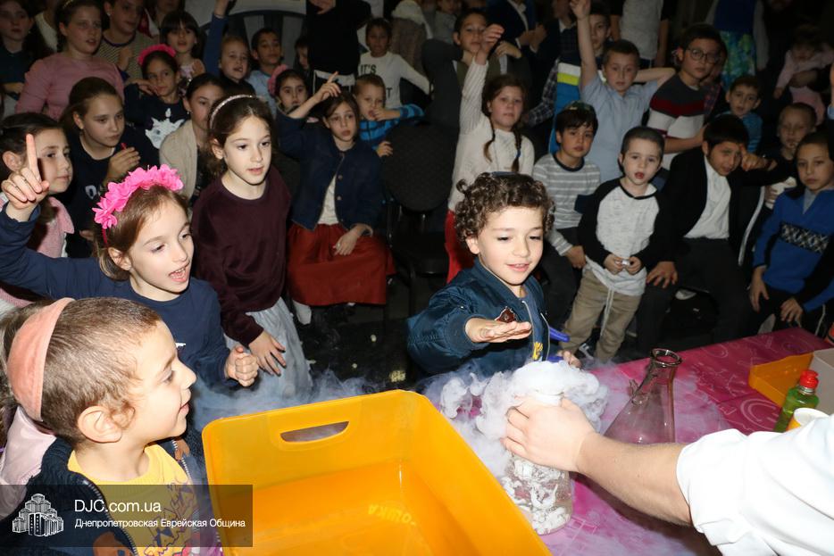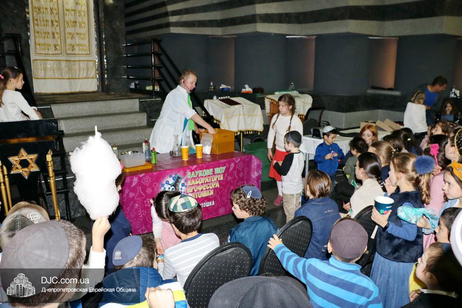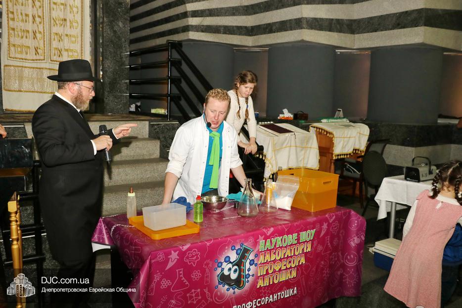 В рамках праздника Суккот еврейская община Днепра организовала целый ряд семейных и детских праздников. В синагоге «Золотая Роза» вечером первого дня Холь а-Моэд Суккот прошел праздник для детей и родителей «Научное шоу профессора Антошки».