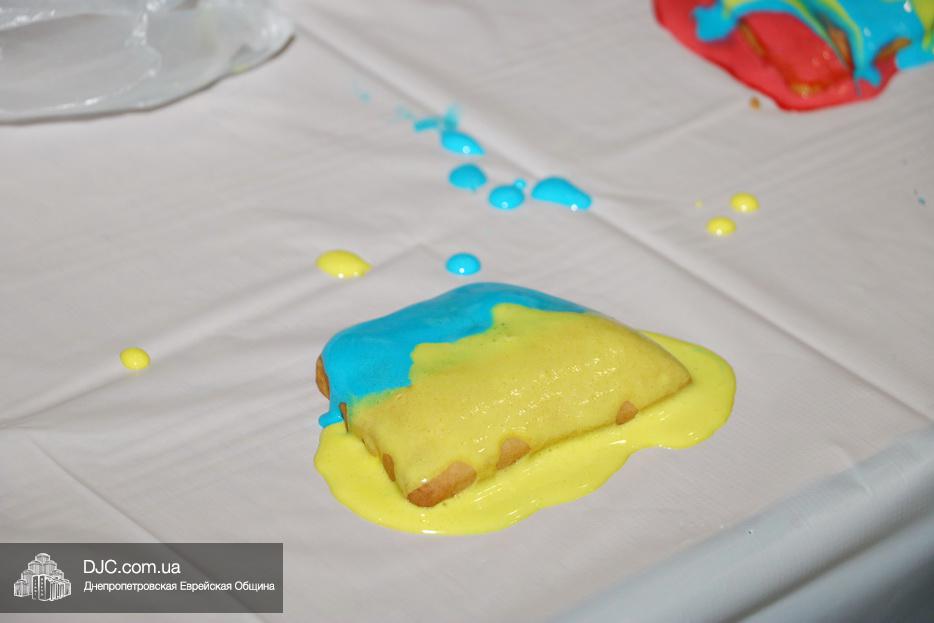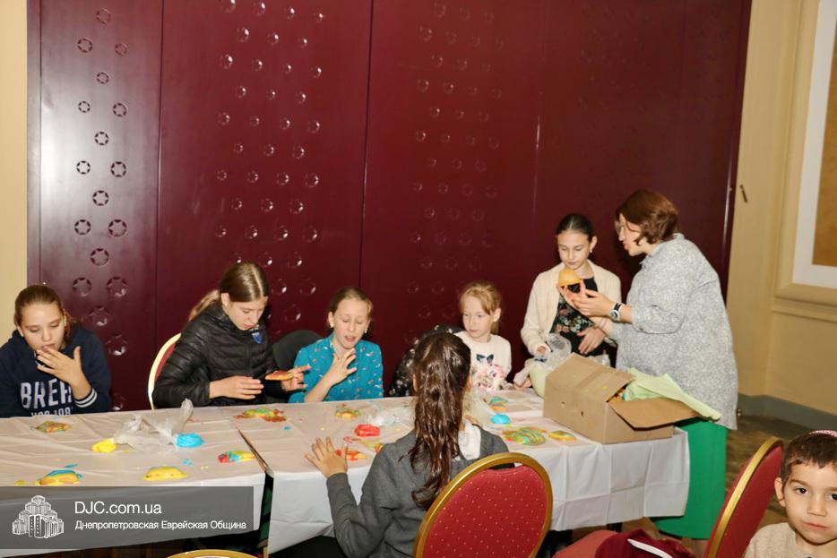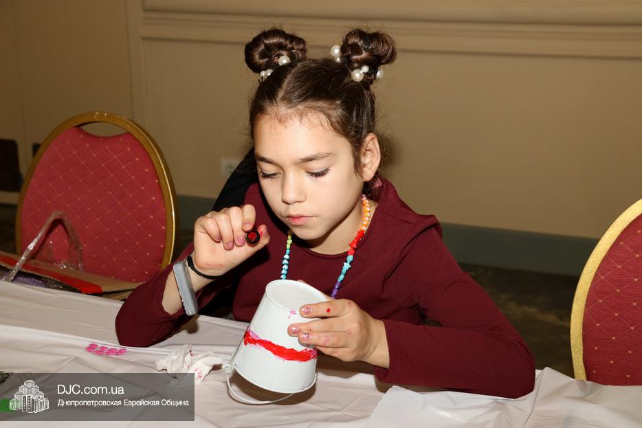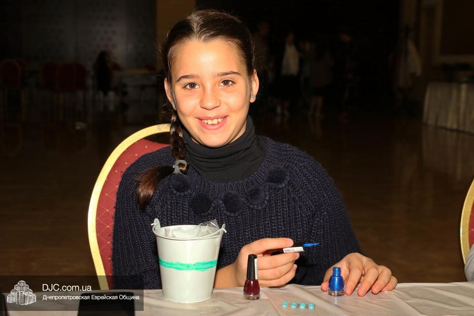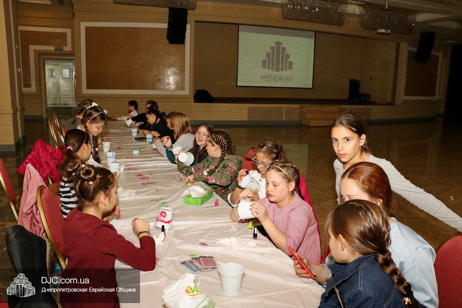 В это время в зале «Ball Room» центра «Менора» были организованы мастер-классы, получившие название «Ведра радости». Как рассказала нашему сайту Хави Энгельсман, девочки должны были раскрасить жестяные ведра, в которые собрать за праздник Суккот так много радости, чтоб ее хватило на весь год. Кроме мастер-классов, для воспитанниц махона была организована подвижная игра, также связанная с темой «Ведра радости».
