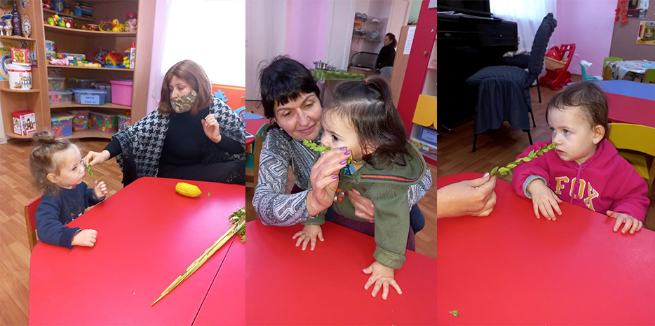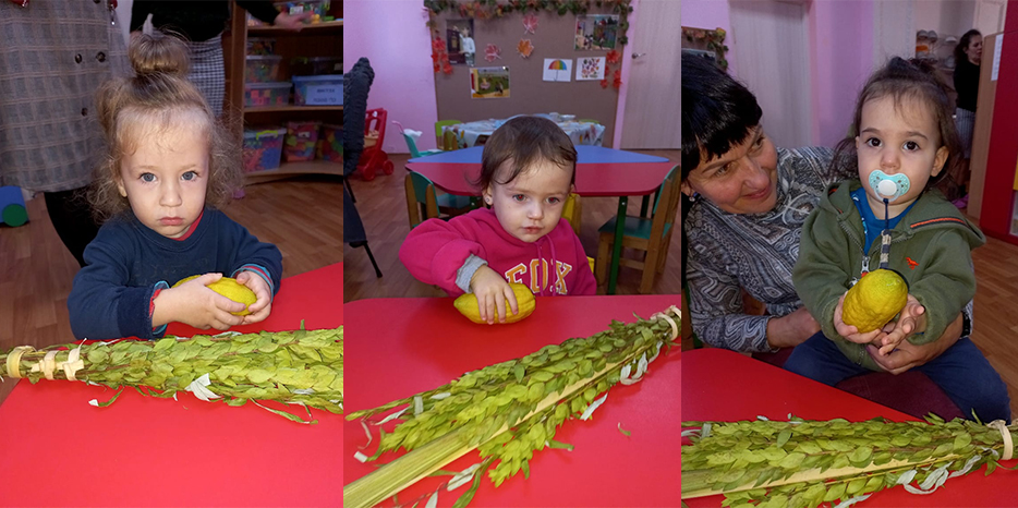 «Мы очень внимательно относимся к изучению еврейских традиций нашими малышами, – рассказала нашему сайту Двора Фурлендер, руководитель программ еврейского компонента, – но все занятия проходят с учетом их возрастных особенностей, поэтому сначала на занятии по знакомству с окружающим миром наши воспитанники рассматривали атрибуты праздника – растения, которые предназначены для выполнения заповеди «арба миним», они держали их в ручках, нюхали и пытались найти разницу.