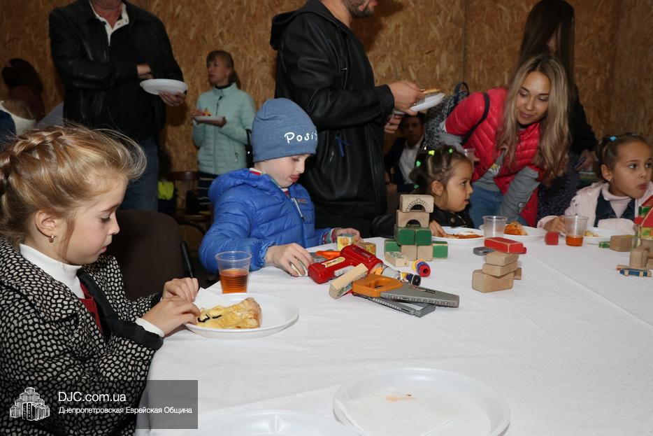«Мы собрались в сукке ресторана «Mendiʼs», – рассказала нашему сайту руководитель образовательных программ Еврейской общины Днепра Юдит Барам, – выполнили заповедь о четырех растениях, прочитали благословение на нахождение в сукке и вкусили, такую любимую нашими детьми, кошерную пиццу. Также в сукке можно было порисовать и построить сукку, а рядом с суккой был организован квест, где наши малыши могли поиграть и побегать.