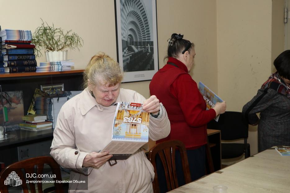 В честь наступившего нового года, участницы проекта Еврейской общины Днепра «Бейт Сара», который направлен на обучение еврейским знаниям, возвращение к своим корням, знакомство с основами еврейской традиции и поддержку пожилых членов еврейской общины, получили в подарок календари на 5783 год.
