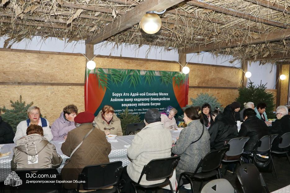 Завершилась наша встреча вкусной и кошерной трапезой в сукке центральной синагоги «Золотая Роза», мы прочитали благословения на нахождение в сукке и, конечно же, брохи, сопровождающие трапезу.