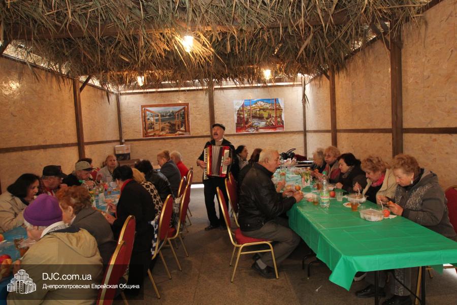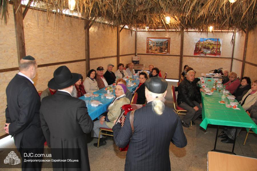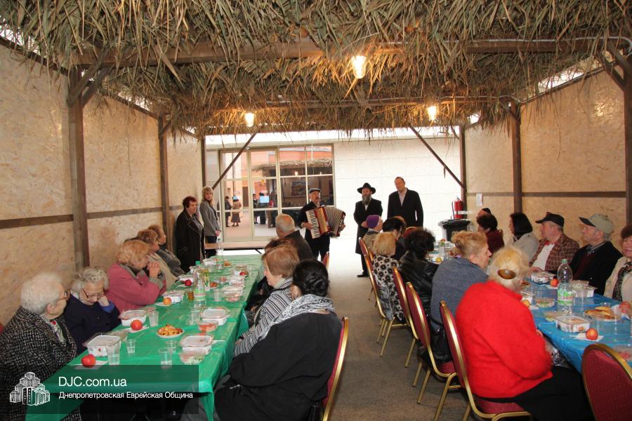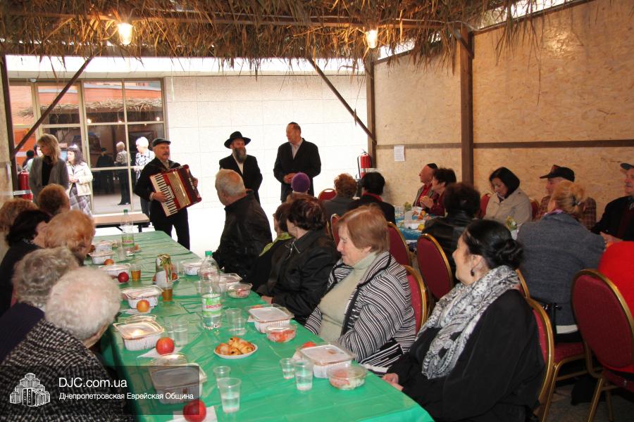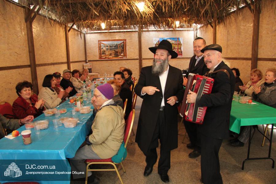 Для пожилых евреев Днепропетровска – подопечных «Хеседа Менахем», администрация фонда организовала несколько праздничных мероприятий в большом шалаше, установленном во внутреннем дворе центра «Менора».